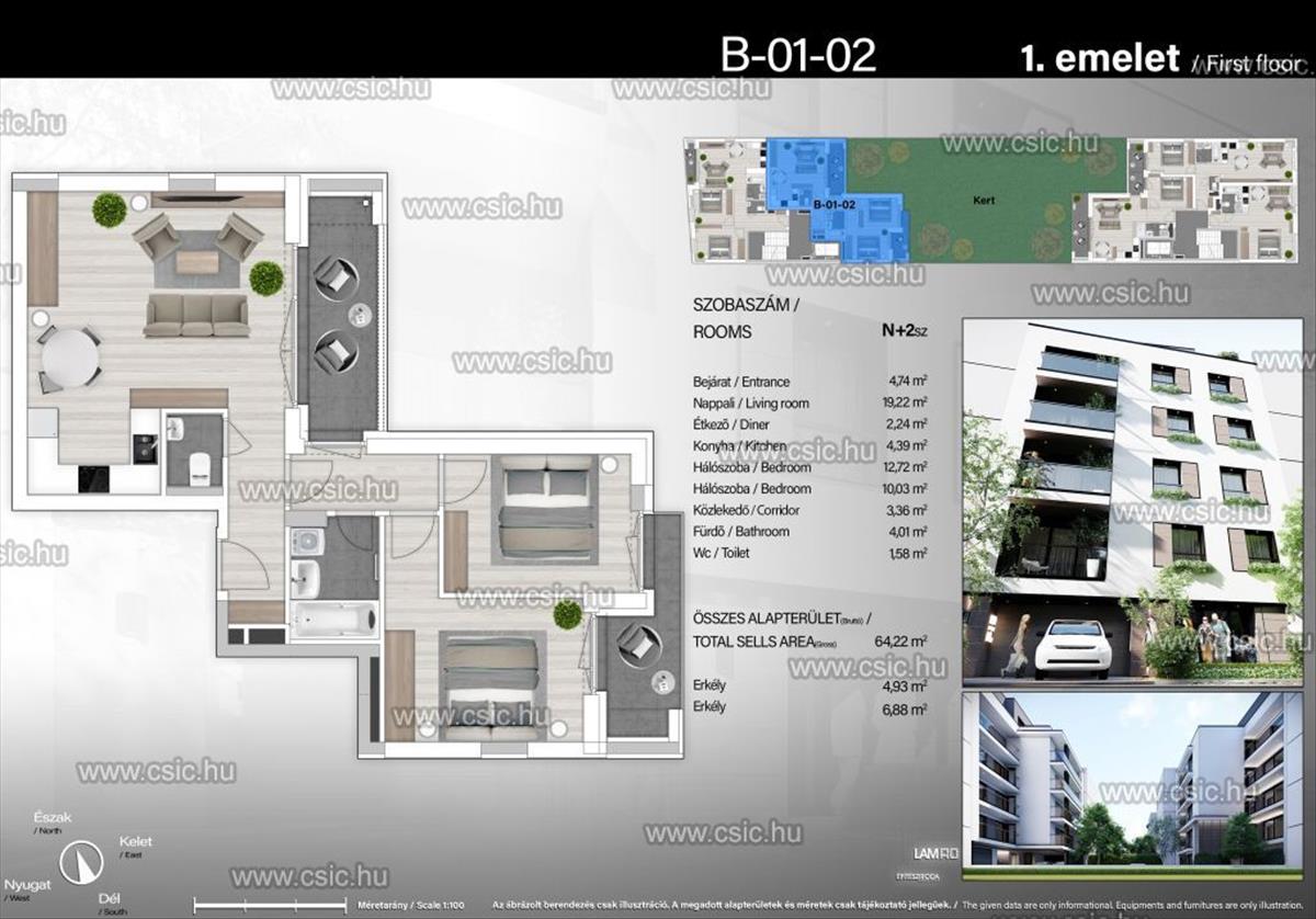 N + 2 sz, 64, 22 m2 + erkély: 4, 93 nm és 6, 88 nm