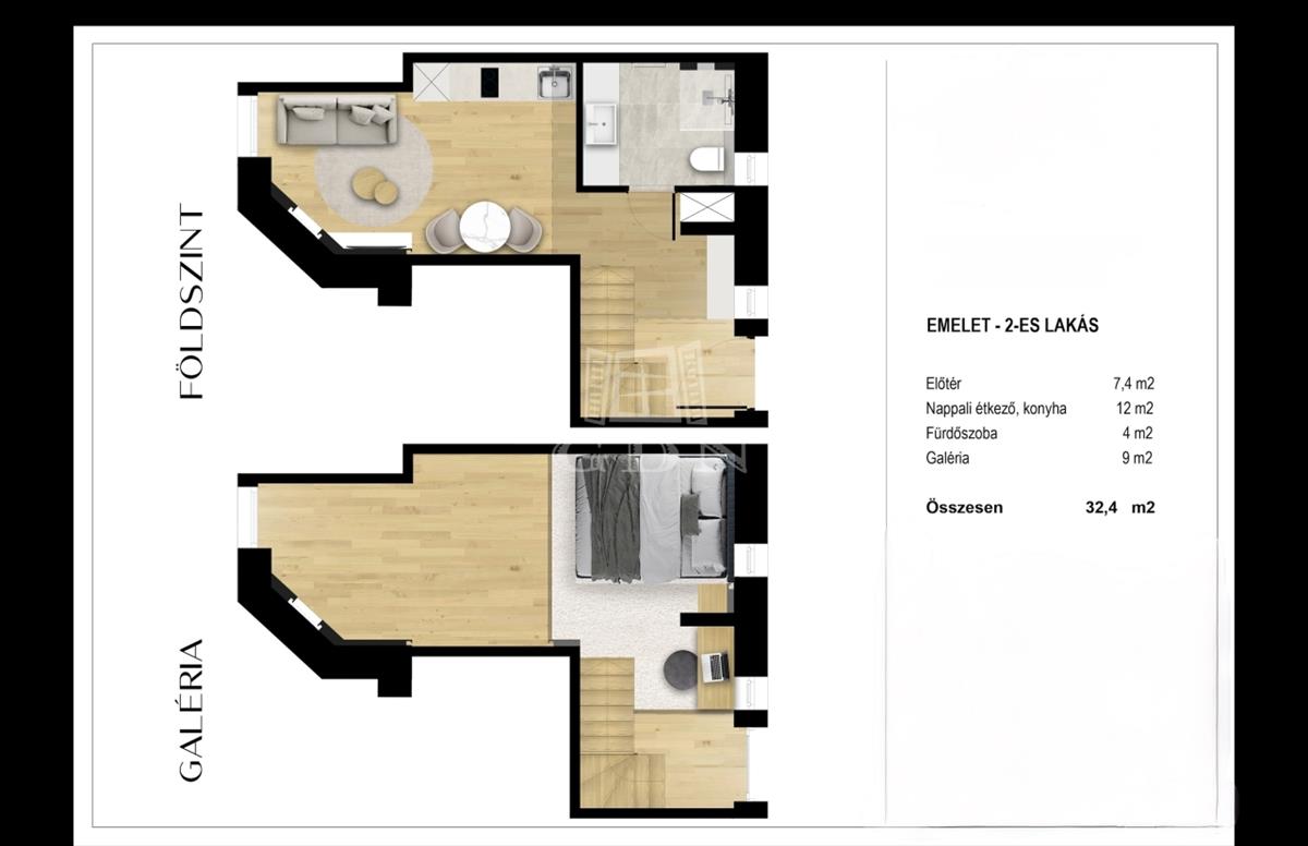 - Alapterület:32 m2