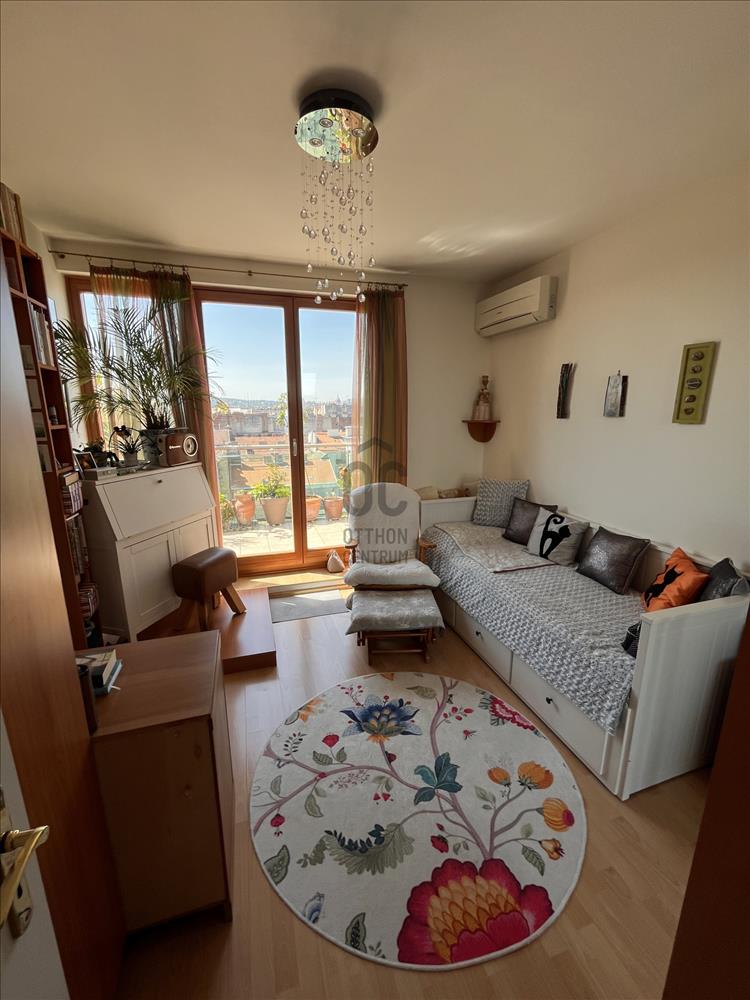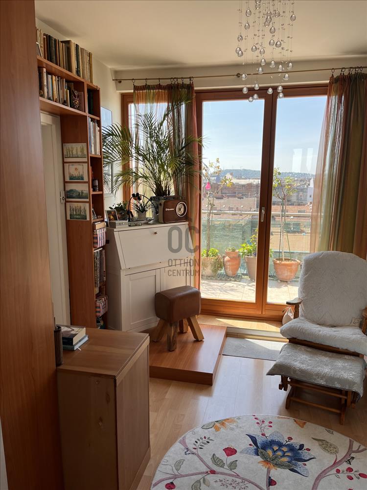 Legfelső emeleten, a IX. emeleten eladóvá vált egy nagy teraszos, panorámás lakás