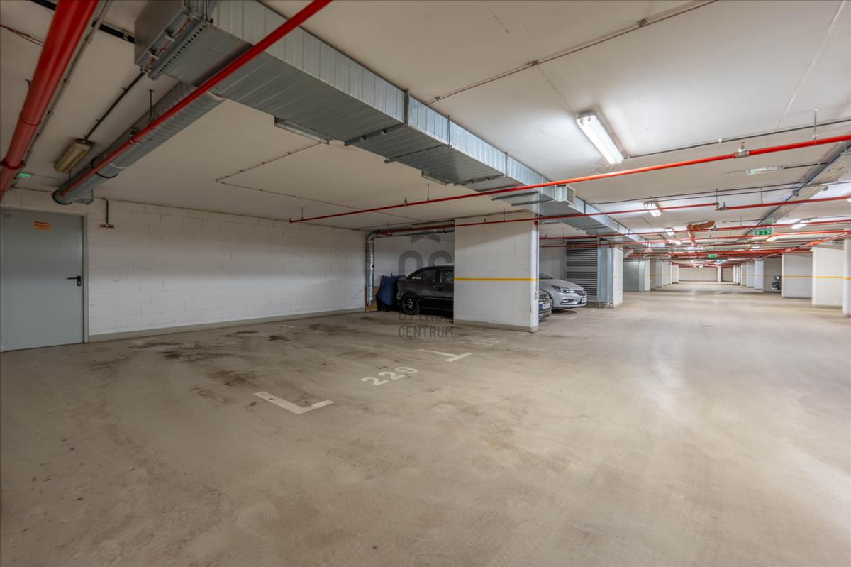 A lakáshoz tartozik egy tágas (15, 53 m²) teremgarázs hely, amely könnyen parkolható, és rendkívül jól pakolható. a parkoló mellett közvetlenül található egy használaton kívüli „menekülési útvonal”, amely extra helyet biztosít, így nagyobb tárgyak (pl. Babakocsi, kerékpár) oldalról történő pakolása is kényelmesen megoldható.