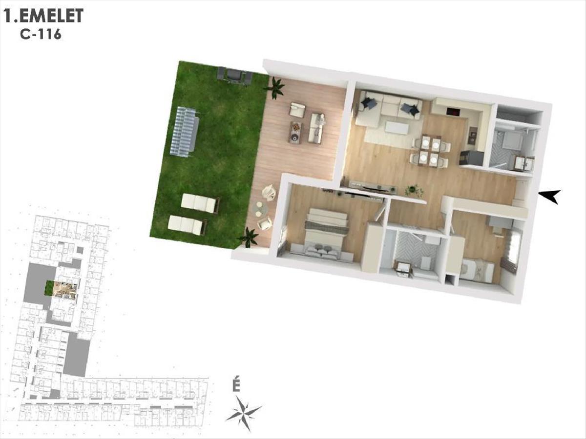 Budapest rendkívül felkapott és folyamatosan fejlődő környéken a XIII kerületben, közel a Dunához, kiemelkedő színvonalú modern, elegáns és energia hatékony új lakópark kerül megépítésre. a 8. emeletes épület komplexum 3 parkoló szinttel, tárolókkal és kerékpároknak kijelölt helyekkel fog rendelkezni. a 377 lakásos társasházban ideális lakásmixet kínálunk mindenki számára. a lakások méretei 30m2-135m2-ig terjednek. a legtöbb lakáshoz nagy méretű erkély és terasz tartozik. a földszinti parkoló fölött tetőkert létesül, melynek egy része közösségi kert, továbbá számos kényelmi szolgáltatás is elérhető lesz: zöld udvar, játszótér, fitnesz terem, szauna áll majd rendelkezésre, ráadásul mindez a Duna-part közelében. a fűtésről és hűtésről gondoskodó levegő/víz hőszivattyús rendszer aa+ besorolással rendelkezik. a lakásokban mennyezetfűtés-hűtés készül, illetve a fürdőszobákban opcionális padlófűtés létesíthető. a nyári melegre gondolva a hűtést olyan technikával oldják meg, hogy a levegőt ne szárítsa. a lakóépület anyagösszetétele is kiemelkedő színvonalat tükröz. Az építés során kizárólag minőségi anyagokat használnak fel, hogy tartós és időtálló otthonokat teremtsenek. a 8 emeletes épület kiválóan illeszkedik a városképbe, valamint ideális közlekedési infrastruktúrával rendelkezik. Az elhelyezkedése kiváló, hiszen a Váci úti irodafolyosó szomszédságában található, így könnyedén elérhető a város központja és a fontosabb üzleti negyedek.