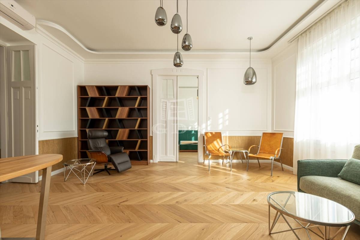 Exkluzív, Dunára néző, 107 m²-es luxuslakás Újlipótváros patinás Palatinus házainak egyikében! Ez a frissen felújított otthon a klasszikus nagypolgári eleganciát ötvözi a modern luxus kényelmével.