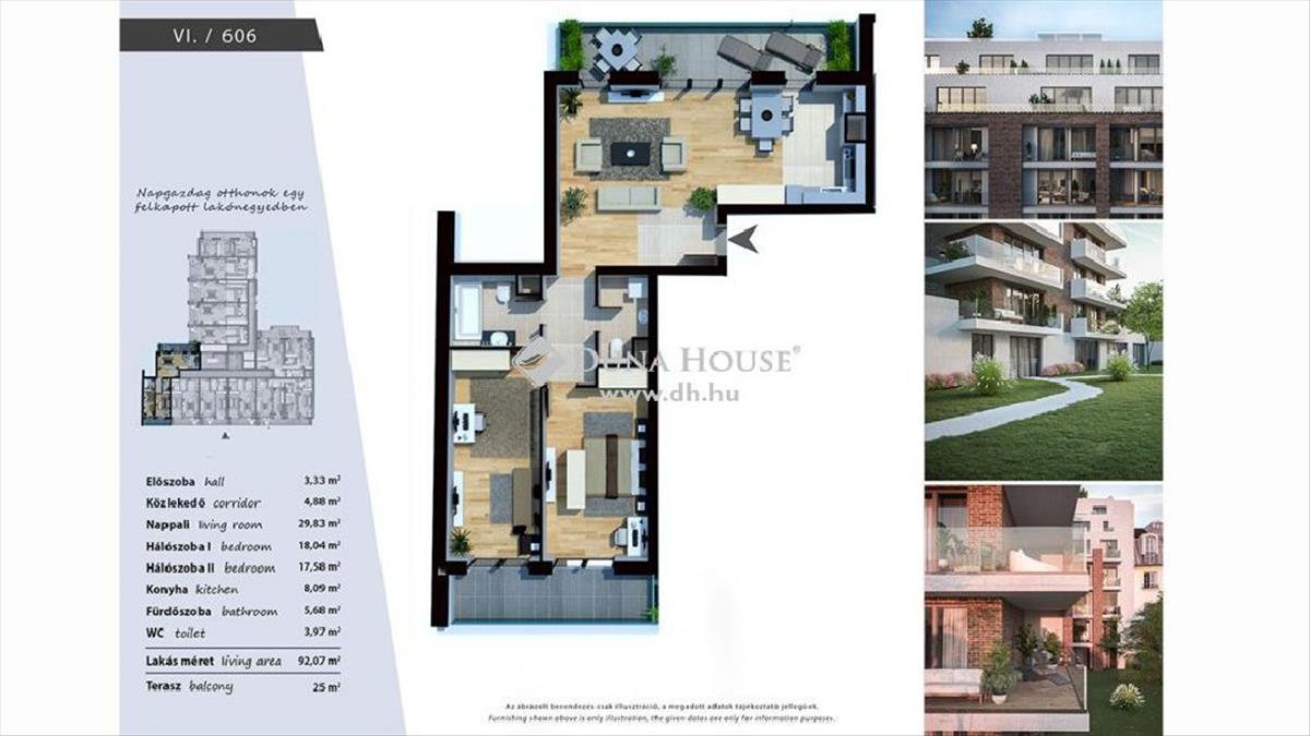 Új építésű modern, energiatakarékos lakások a XIII. kerületben, BudapestenNyugatitól csupán néhány percre, még is nyugodt környezetben található ez a modern, urbanista lakóház. a 8 szintes épület lakásai 1-4 szobásak, 30 - 106 nm-ig. a folyosók természetes megvilágítást, és szellőzést kapnak a homlokzati ablakokon keresztül. Nagy üvegfelületek, teraszok és maximális zöldterületek kerültek kialakításra a földszinti és első emeleti udvarokban. Az emeleteken a lakások tájolása Keleti-Déli és Nyugati, így minden lakásban optimálisak a fényviszonyok, Északi tájolás nincs az épületben. Az optimális fenntarthatóságot, modern gépészeti megoldások, energiatakarékos világítási, és elektromos rendszerek, valamint szelektív hulladékkezelés biztosítja. Mindemellett a víztakarékos hálózat optimalizálja a vízfelhasználást és hasznosítja a tetőre érkező csapadékot! KörnyékAz épület elhelyezkedése közlekedés szempontjából kiemelkedő: a Dózsa György úti metrómegálló pár percnyire található gyalogosan, valamint a Róbert Károly körút, a rakpart vagy akár az Árpád-híd is csupán néhány perc. Szolgáltatások szempontjából a XIII. kerület ezen része kiemelkedik: Lehel téri piac, és a Westend City Center bevásárlóközpont is pár perc alatt elérhető. a legnevesebb látnivalók és kikapcsolódási lehetőségek, mint például a Városliget, Hősök tere, múzeumok, és az állatkert is karnyújtásnyira van. Amennyiben további, részletes információra van szüksége, keressen bizalommal.