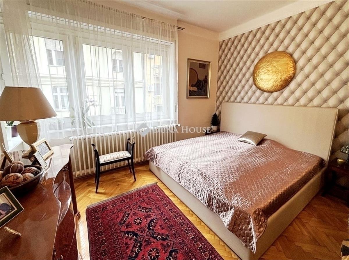 Eladóvá vált egy ritka adottságú, jól karbantartott nagypolgári lakás Újlipótváros egyik legkeresettebb részén. a XIII. kerület közkedvelt utcájában, a Hollán Ernő utcában rendezett, jó állapotú társasházában kínálunk megvételre egy 87 m² alapterületű lakást, amelyhez2 m²-es erkély is tartozik. Az ingatlan klasszikus nagypolgári jelleggel rendelkezik: közel 3 méteres belmagasság, tágas, jól tagolt terek és keleti tájolás jellemzi, aminek köszönhetően napfényes. Jelenlegi elrendezése szerint két szobával és egy félszobával rendelkezik, utóbbi gardróbként funkcionál, de igény szerint más célra is könnyen alakítható. a lakás jó állapotú, a legutóbbi felújítás 2011-ben történt, amelynek során megújultak a burkolatok, megtörtént a teljes falfestés, a parketta csiszolása és lakkozása, valamint az ajtók és ablakok festése és az elektromos hálózat átvizsgálása is. Az ingatlan azóta is folyamatosan karbantartott. a társasház kívül-belül rendezett, az ingatlanhoz közös használatú tároló is tartozik. a bútorok nem képezik a vételár részét, azok a vevői ajánlattól függően külön megállapodás tárgyát képezhetik. Az ingatlan tehermentes, jogilag rendezett. Az elhelyezkedés Újlipótváros egyik legnagyobb előnye: a környéken sétatávolságon belül kávézók, éttermek, pékségek, galériák és színházak érhetők el, miközben a mindennapi bevásárlás is könnyen megoldható. a Westend Bevásárlóközpont közelsége gyors és kényelmes vásárlási lehetőséget biztosít, mégis megmarad a városrészre jellemző nyugodt, polgári hangulat. a környék kiváló tömegközlekedési kapcsolatokkal rendelkezik, több villamos- és buszjárat, valamint metró is rövid időn belül elérhető. Az ingatlan saját célra ideális választás, ugyanakkor elhelyezkedése és adottságai miatt befektetésnek is kifejezetten ajánlott, hosszú távon is stabil értéket képvisel.