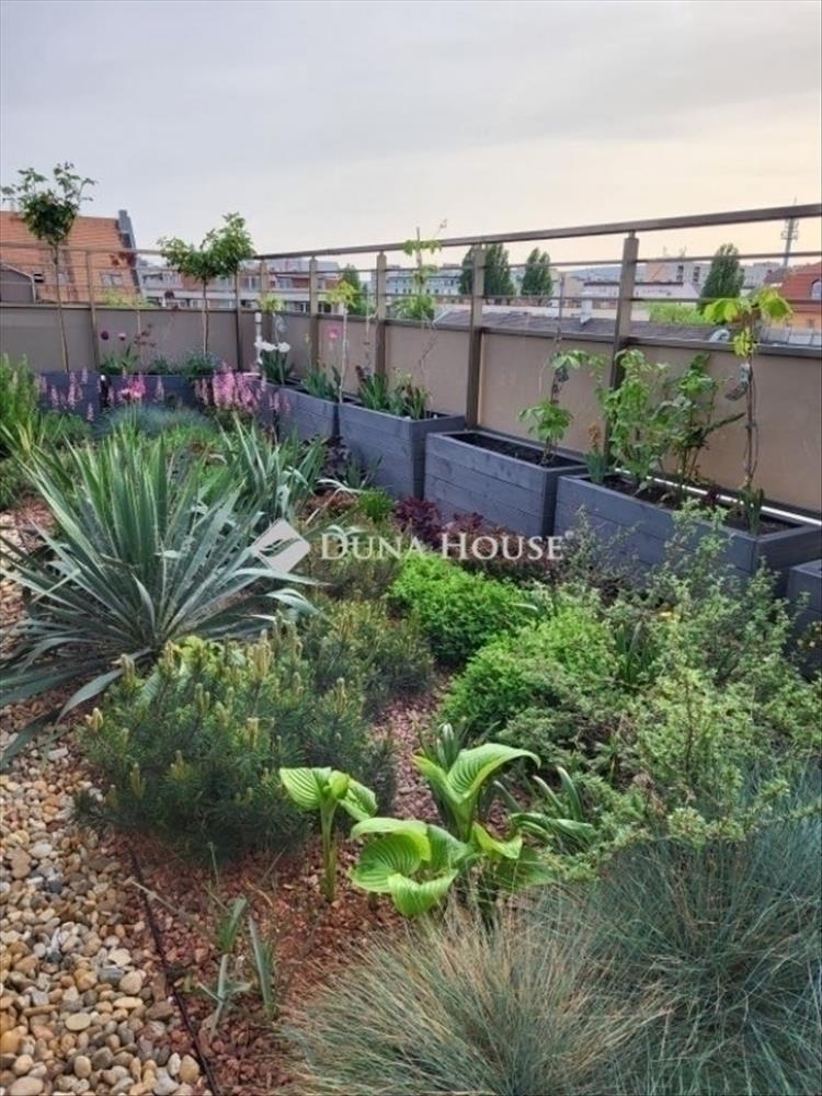 Két részből álló, (összesen 109 m2) 50 m²-es saját tetőkert igazi zöld oázis a város felett és
