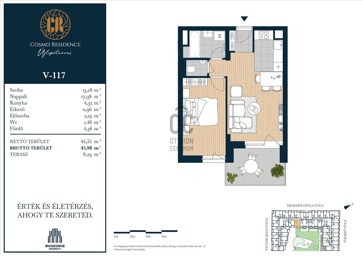 A Biggeorge Property legújabb fejlesztése, a Cosmo Residence Budapest 13. kerületének közkedvelt helyszínén, Újlipótváros szívében épül, a Hegedűs Gyula, Visegrádi, Victor Hugo és Thurzó utca által határolt területen. a környék hangulatát tükröző épület 230 energiahatékony otthont kínál, amelyek megfelelnek a legújabb környezettudatos elvárásoknak. a fejlesztés részeként üzletek, tárolók és gépkocsi-beállók is kialakításra kerülnek, amelyek tovább növelik az épület lakóinak kényelmét. Hitel.hu - Hasonlítsa össze a bankok lakáshitel ajánlatait