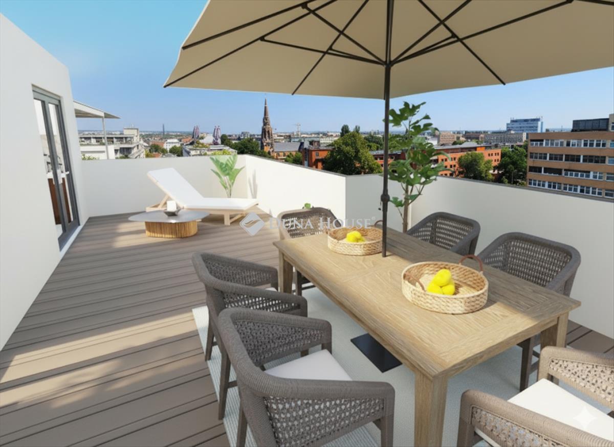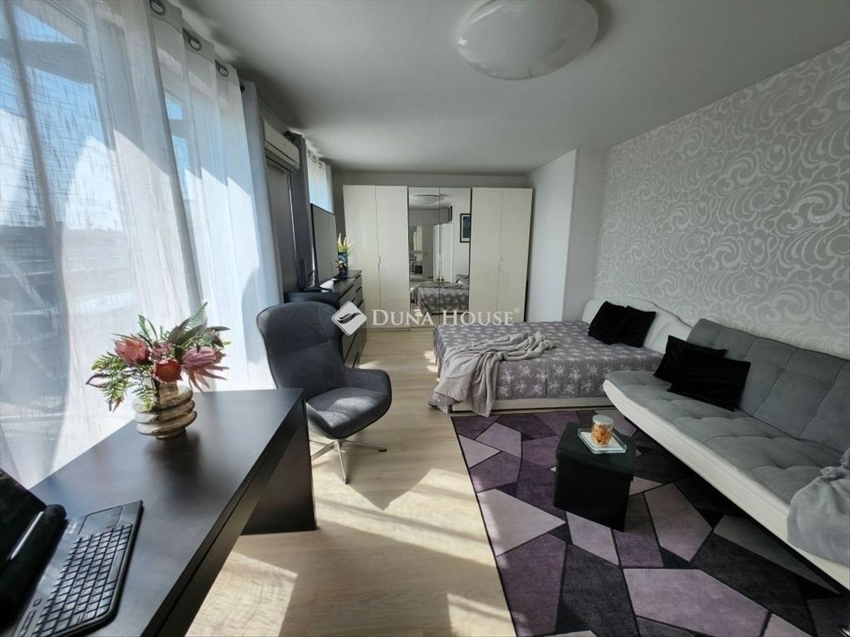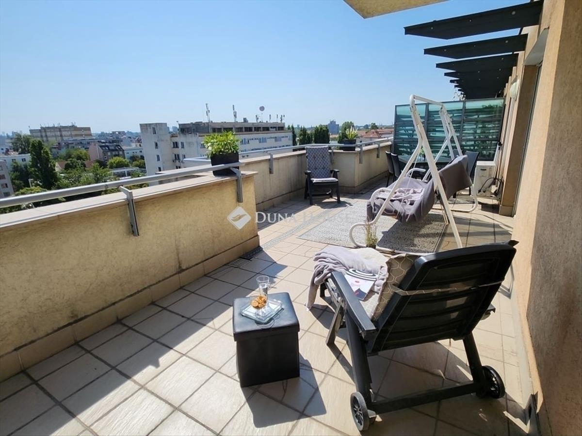 Modern penthouse lakás a Central Parkban 180°-os panorámával és álomterasszal! Budapest XIII. kerületének szívében, a Lehel úton, kínálunk megvételre egy különleges, 8. emeleti, keleti tájolású penthouse lakást, amely egyszerre nyújt modern városi életérzést és nyugodt otthont. Az ingatlan bruttó 72 m²-es (nettó 39 m² lakótér + 33 m² terasz), tulajdoni lapon 55 m². a tágas, világos nappaliból és a teraszról lenyűgöző, 180°-os panoráma tárul elénk, amely minden nap új élményt kínál legyen szó reggeli kávéról a napfelkeltében, vagy egy esti borozásról a város fényei alatt. Ami igazán különlegessé teszi:- Jelenleg egy légterű, de könnyedén leválasztható egy külön hálórész, így a lakás még praktikusabbá és otthonosabbá tehető. - a kialakítási lehetőségek bemutatására 3d látványtervek is rendelkezésre állnak, hogy a leendő tulajdonos könnyen elképzelhesse saját álomotthonát. - Penthouse jelleg, nagyméretű terasz, páratlan térélmény. - Modern elrendezés, napfényes terek, alacsony rezsiköltség (b energetikai besorolás). - Kiváló közlekedés: busz- és villamosmegállók közvetlenül az épület előtt. a lakás ideális választás mindazoknak, akik:- egyediséget és panorámát keresnek, - első otthonukat vásárolnák akár 3%-os kedvezményes hitellel, - vagy olyan befektetést keresnek, amely könnyen bérbe adható a lokáció és a különleges adottságok miatt. Az ingatlan a képeken látható bútorokkal együtt eladó, melyek értéke 5 M Ft, így azonnal költözhető. Érdeklődés esetén keressen bizalommal, akár hétvégén is! Ne maradjon le erről az igazán ritka lehetőségről!