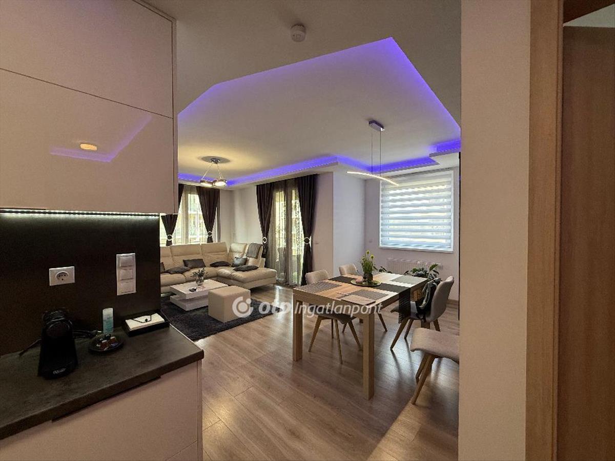 A lakás egyedi belső kialakítású, modern stílusban berendezett, igényesen karbantartott, jelenleg rövid távú kiadásra használják. Tisztaságáról és rendezettségéről rendszeres takarítás gondoskodik. Augusztus második felétől költözhető, de a megvásárlása már most lehetséges.