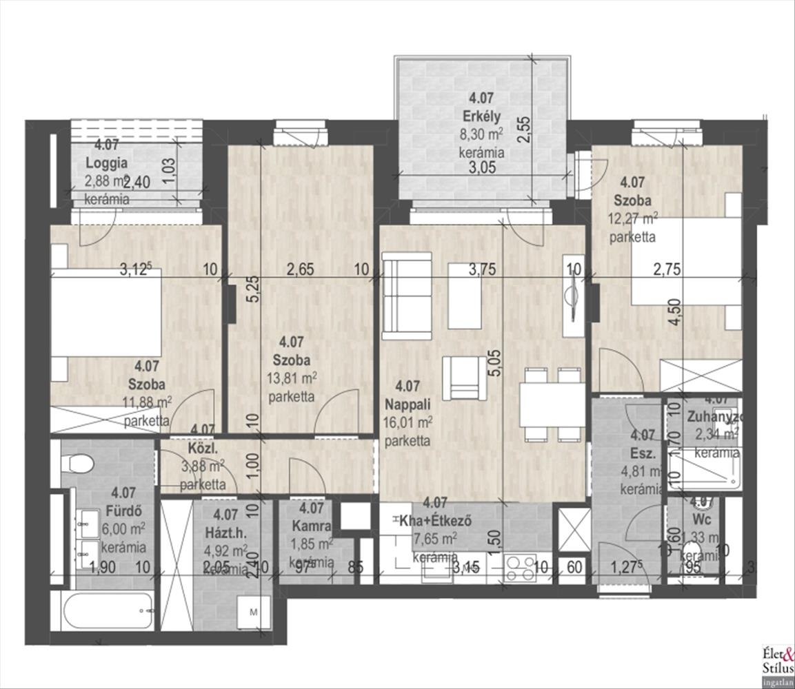 Az 4-6. emelet között található, azonos lakások árai, emeletenként változhatnak.