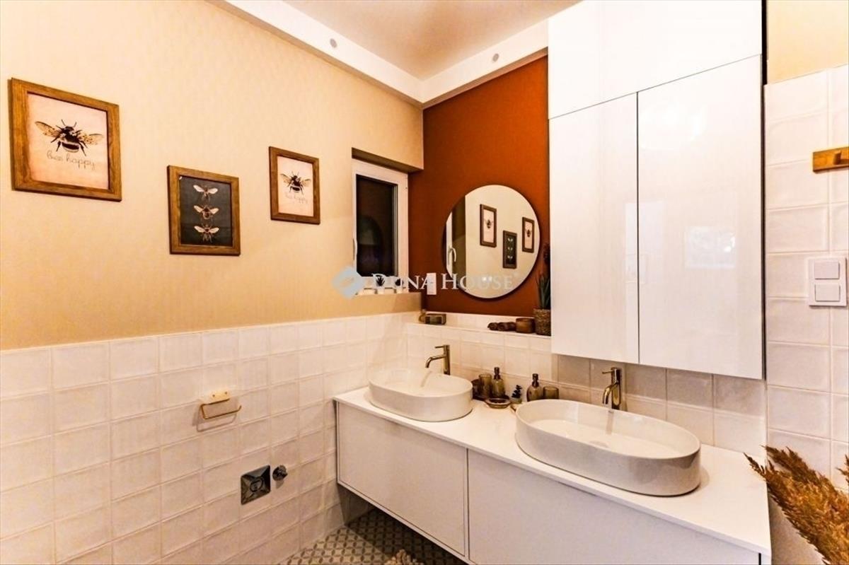A minőségi szaniterek, nyílászárók és burkolatok egységes képet alkotnak a gondosan kiválasztott bútorzattal.