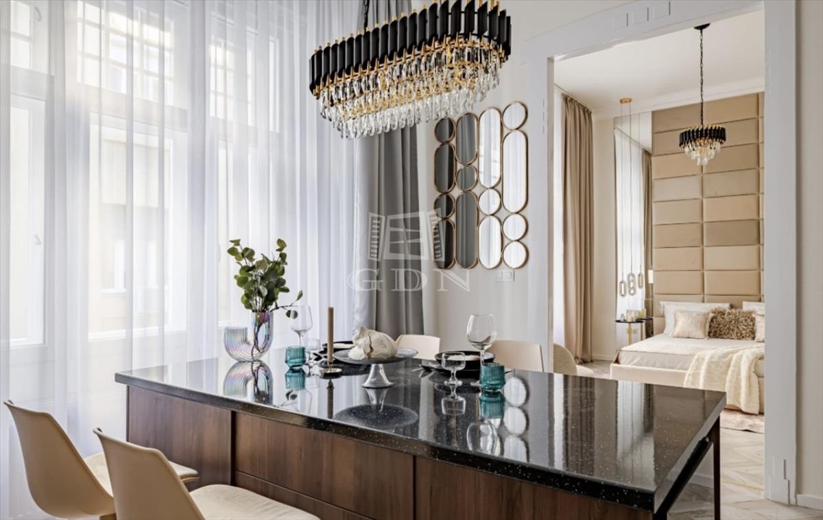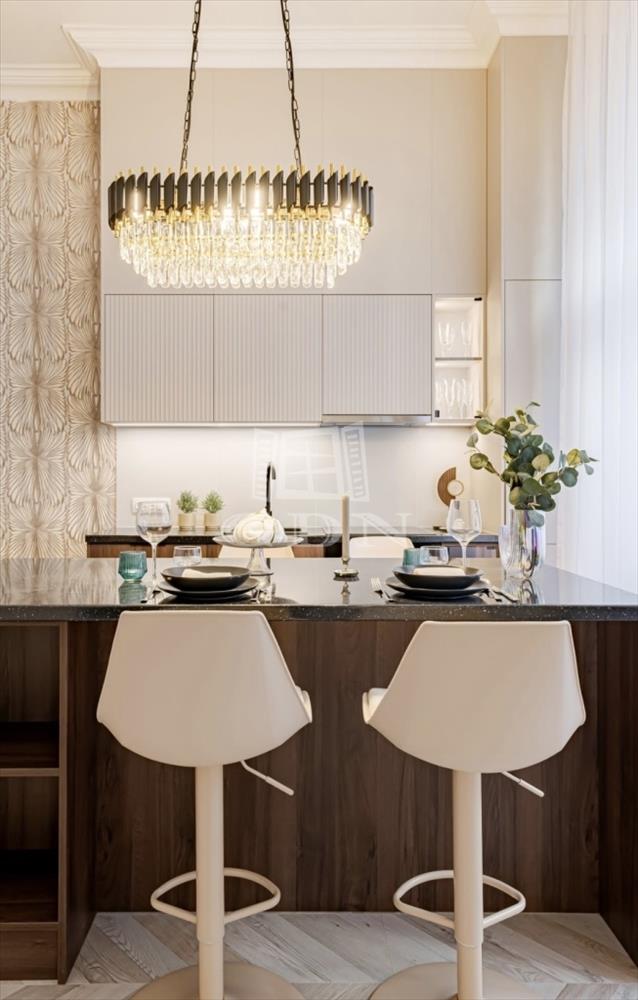 A világos, nagy belmagasságú terek (3, 6 m), a stílusos lakberendezői megoldások mind hozzájárulnak ahhoz, hogy ez a lakás igazán különleges legyen. a minőségi burkolatok, az exkluzív Roberto Cavalli tapéta, a kifinomult világítástechnika és a korszerű konyhai gépek a legmagasabb igényeket is kielégítik.