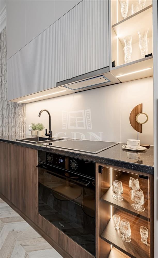 •Egyedileg gyártott design konyhabútor teljes gépesítéssel (borhűtő, sütő, kerámia főzőlap, elszívó, kombinált hűtőszekrény, mosogatógép)