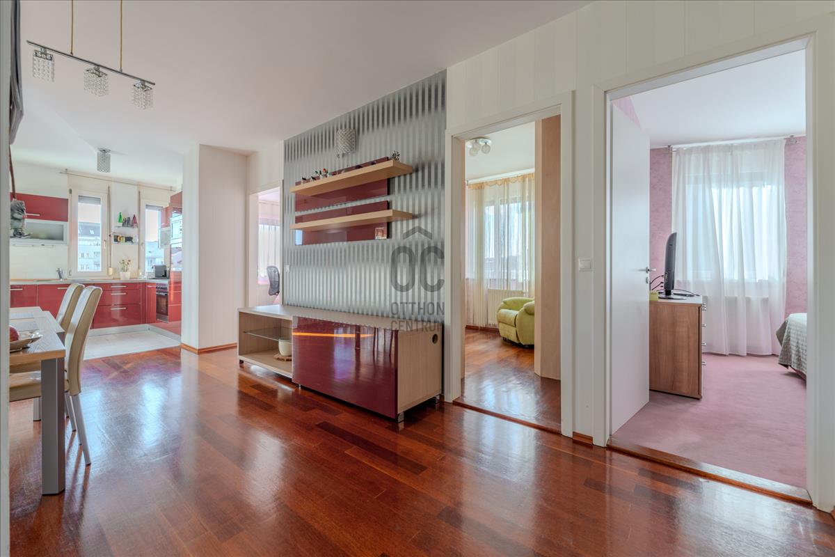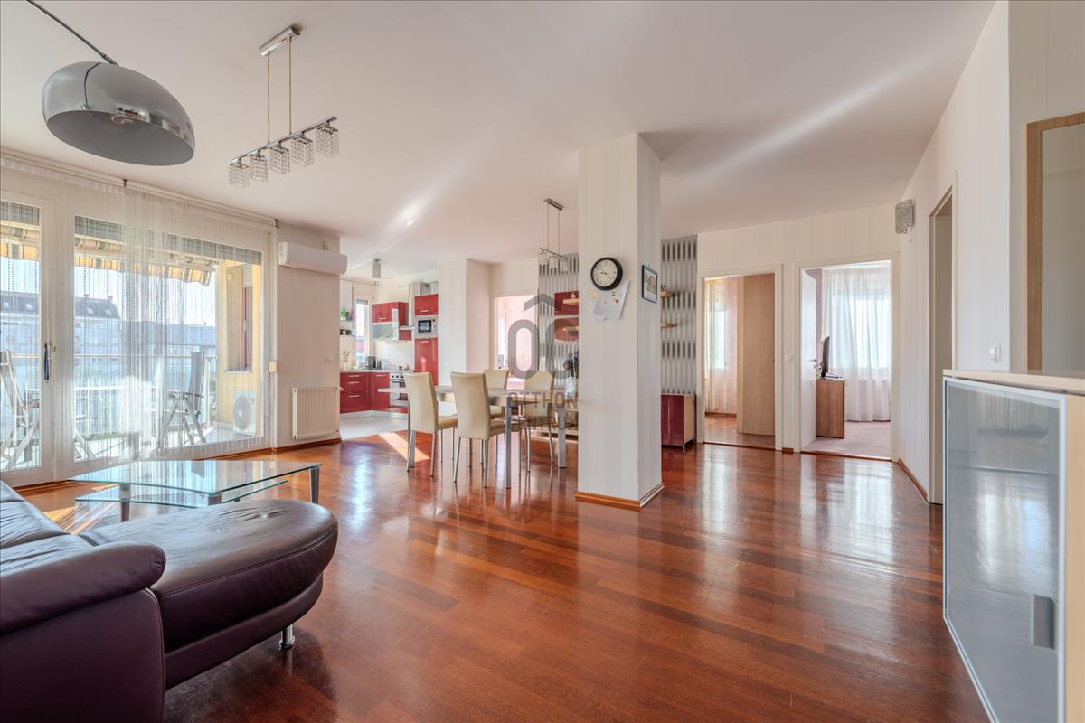 Eladásra kínálunk egy 95 m²-es, magas emeleti, napfényes lakást, 10 m²-es erkéllyel.