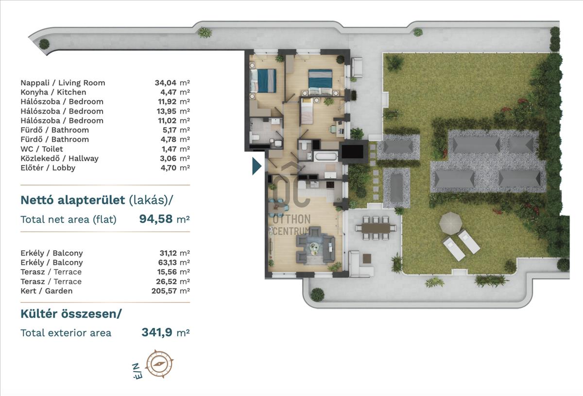 • Tájolás:NY