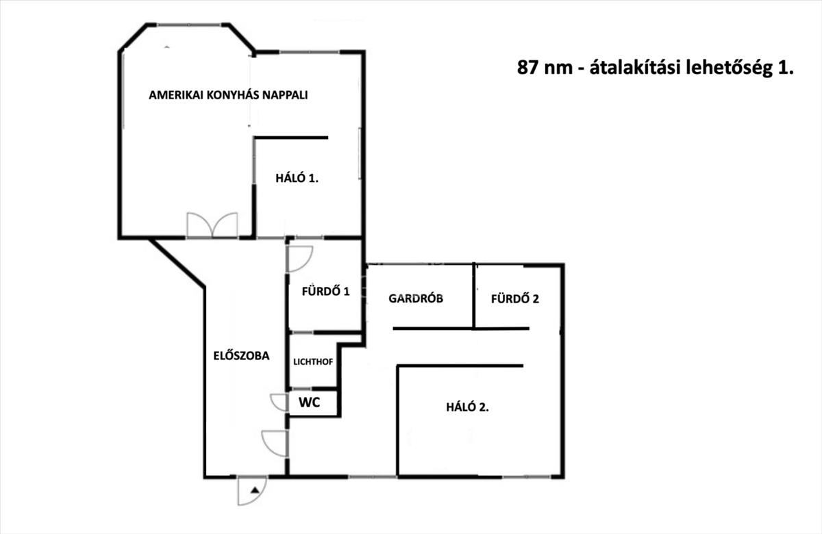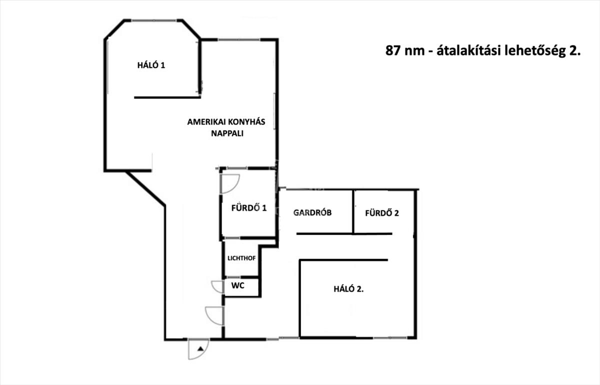 A lakás kiváló adottságainak köszönhetően könnyedén átalakítható: igény esetén egy második hálószoba (akár saját fürdővel és gardróbbal) is kialakítható, amerikai konyhás nappali megoldással.