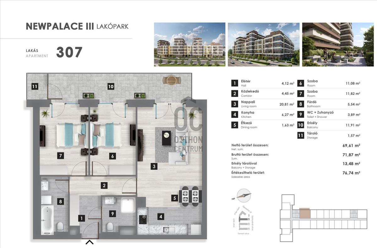 3. emelet | 69, 61 m² | 11, 91m² erkély | 3 szoba |2026 év végén költözhető | 5% áfa visszaigényelhető a vételár egy részéből