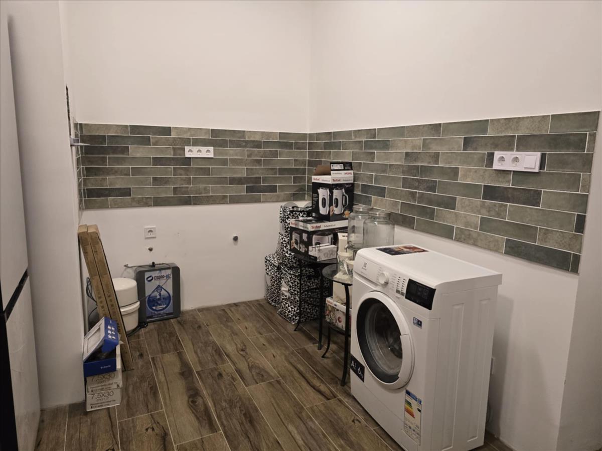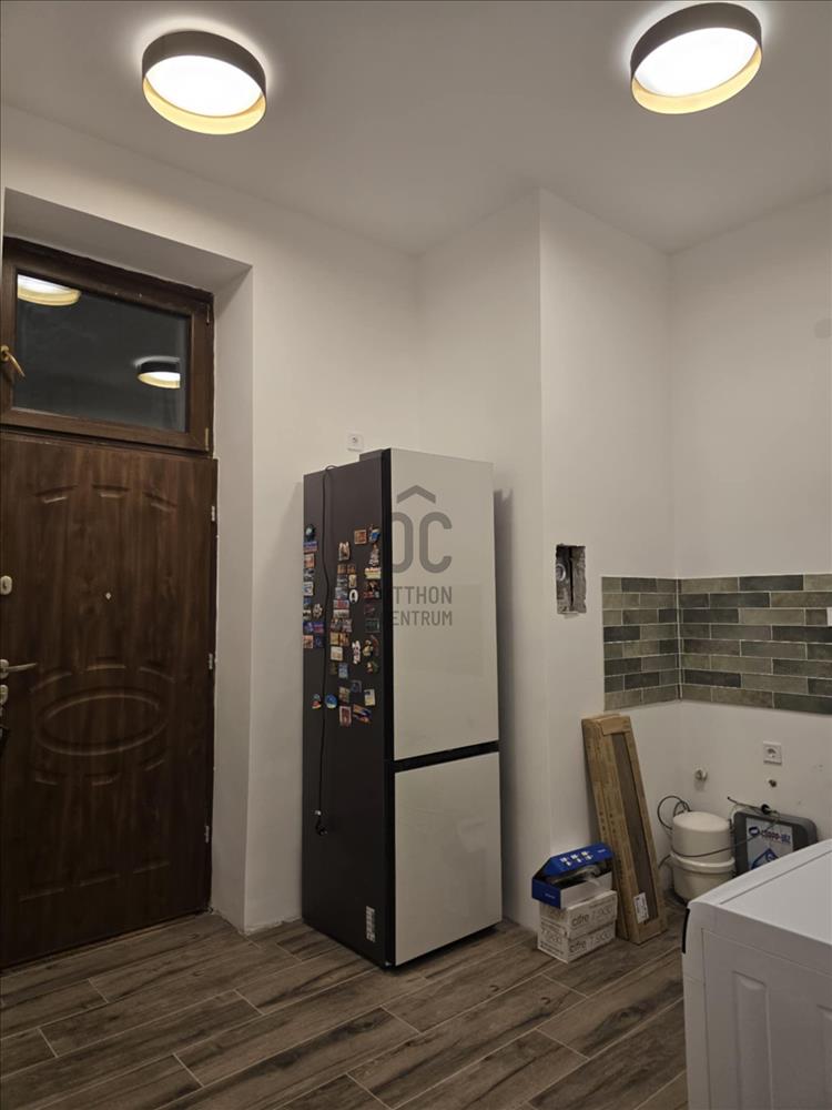 A konyhában már a kiállások és burkolatok is elkészültek, így már csak a konyhabútor beszerzése szükséges. /A hűtő is új, megvásárlása külön megállapodás tárgya/