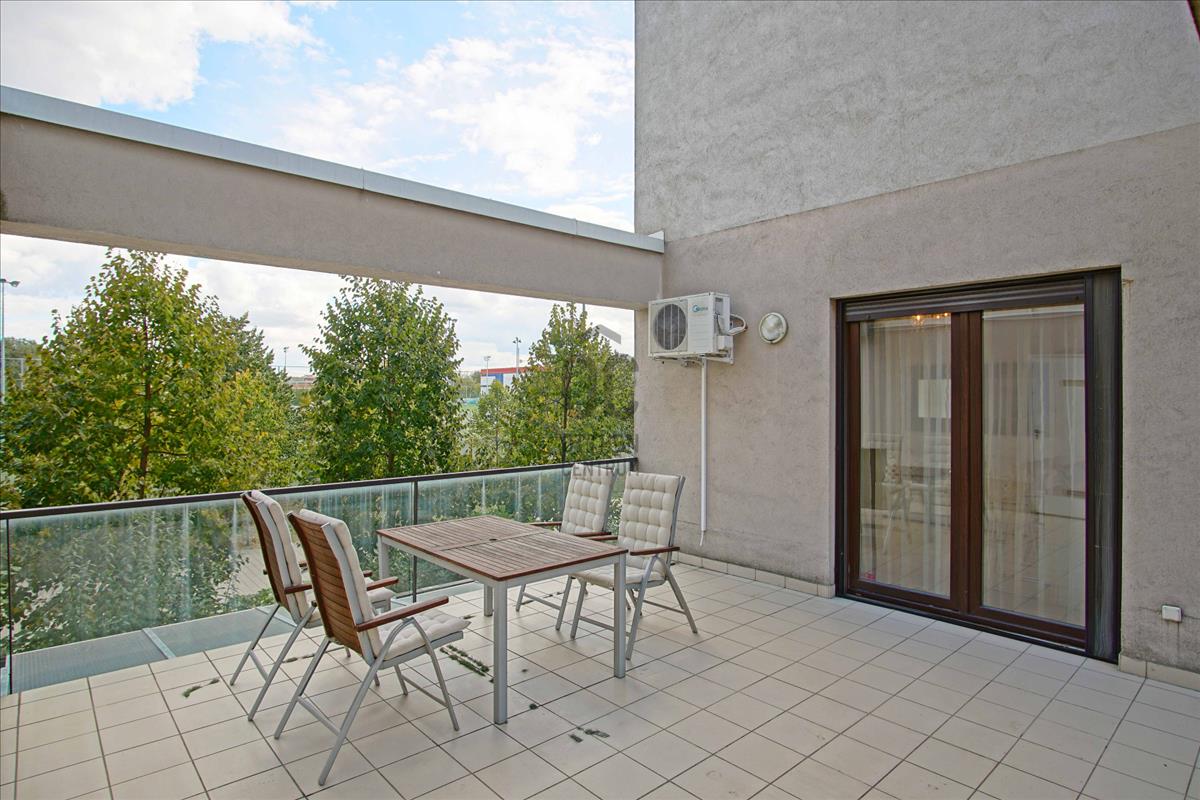 Ritka adottságú lakás eladó a XIII. kerületben, Angyalföldön, a Rozsnyay utcában: 25 m²-es, valóban használható nagy terasz, nappali + 3 külön nyíló szoba, két mosdó, valamint a lakásból nyíló nagy méretű tároló teszik egyedivé. Az átgondolt elosztás, a bőséges kültéri kapcsolatok és a komplett „csomag” (lakás+tároló + garázs) együtt teszik igazán piacképes, nehezen összehasonlítható ajánlattá.