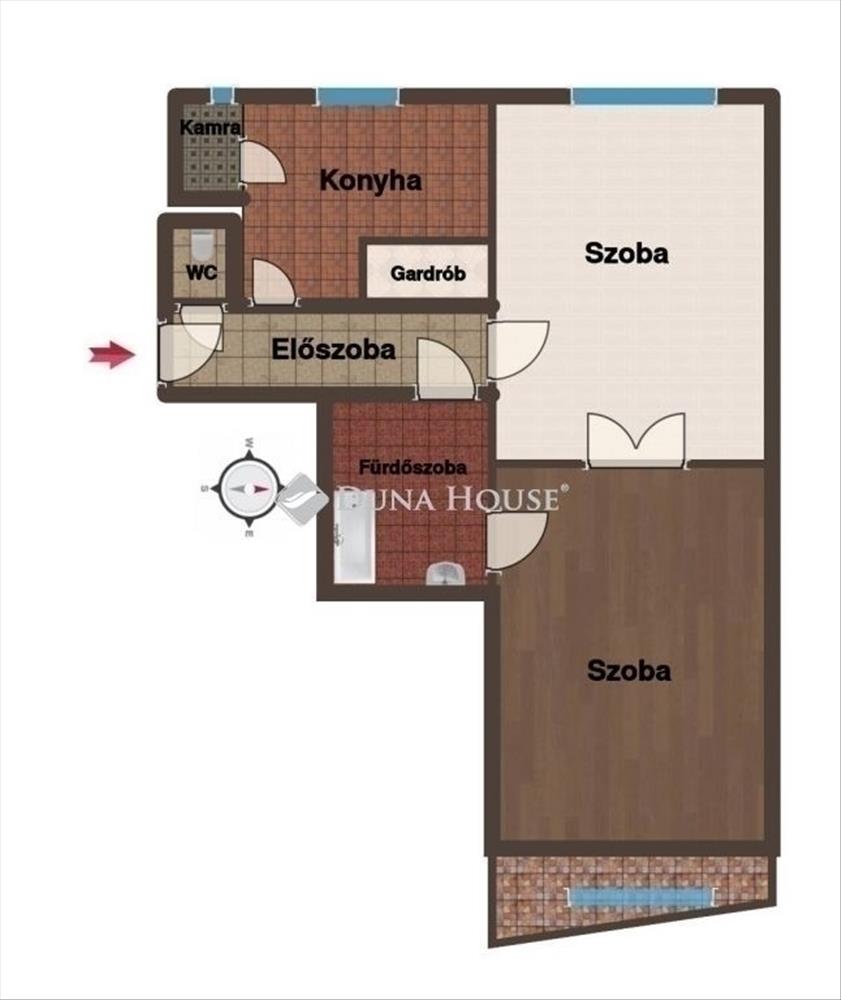 A lakásba belépve az előszobából nyílik rögtön baloldalon a wc, majd rögtön utána a konyha helyezkedik el, melyhez kis kamra is tartozik. a konyhában a meleg vizet eddig villanybojler szolgáltatta. Az előszobában továbbmenve baloldalon került kialakításra egy gardrób szekrény. Az előszobából jobbra a fürdőszobába léphetünk, egyenesen pedig az egyik szobát érhetjük el. a fürdőszobában fel van szerelve egy modern villanybojler, ez szolgáltatja a meleg vizet a fürdőben. a fürdőszobából másik oldalán kilépve eljuthatunk az erkélyes szobába. Az erkélyről látszik a Gellért-hegy és a Szabadság-szobor.