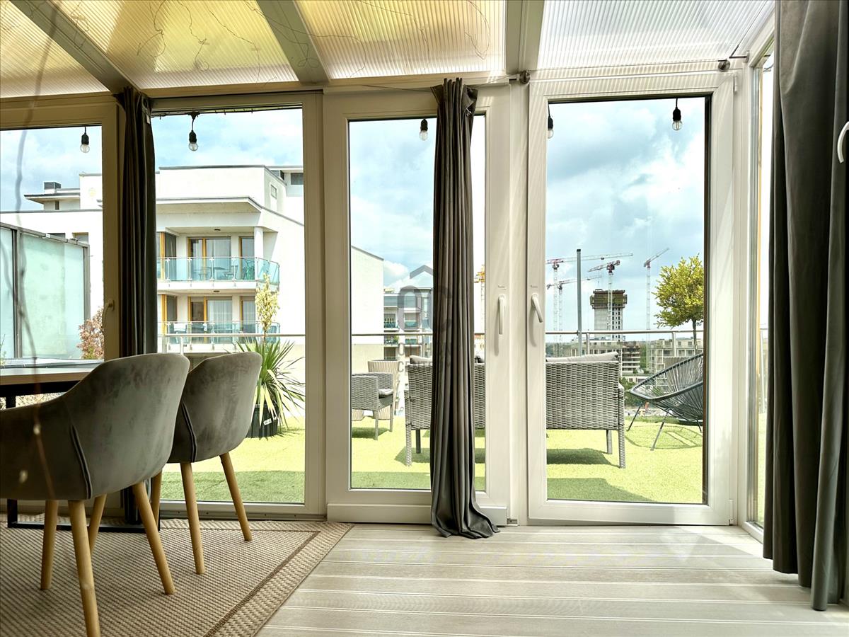 - a tágas nappaliból a télikerten keresztül juthatunk a privát teraszra, a hálószobából pedig kijárat van a nagy erkélyre.