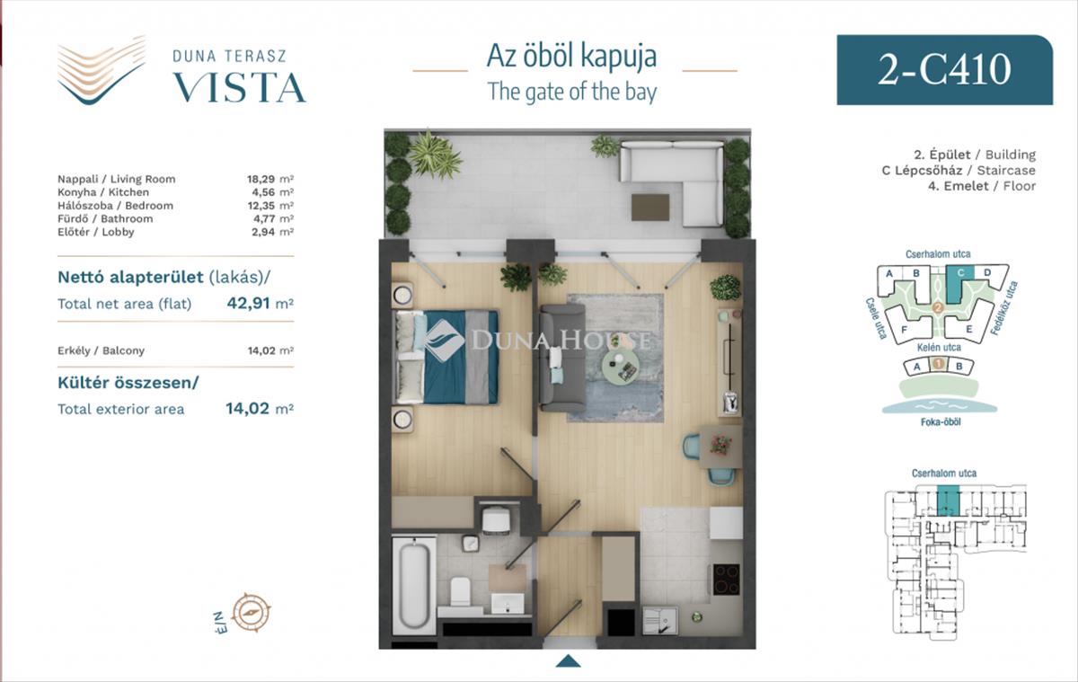 Eladó exkluzív 2 szobás lakás a Marina Parton vízparti társasházban! Fedezze fel a modern városi életstílus és a természet közelségének tökéletes harmóniáját Budapest egyik legkeresettebb részén a Marina Parton! -Lakás jellemzői:Újépítésű, exkluzív társasház 4. . emelet2 szoba, összesen 42, 91 m² lakótérTágas, 14, 02 m²-es erkélyUtcai nézet, világos, csendes lakásÁtadás várható: 2026. Szeptember-Befektetésnek és otthonnak is ideális:Legyen szó hosszú távú befektetésről vagy saját használatról, ez az ingatlan biztos választás. a Marina Part kiemelkedően jó lokációval, magas bérleti hozammal és folyamatos értéknövekedéssel büszkélkedhet. -Fizetési ütemezés elérhető! Ne maradjon le erről a páratlan lehetőségről! Keressen bizalommal."Amennyiben a Duna House által hirdetett bármelyik ingatlan felkeltette az érdeklődését, további információra van szüksége, meg szeretné tekinteni, abban is állok rendelkezésére.