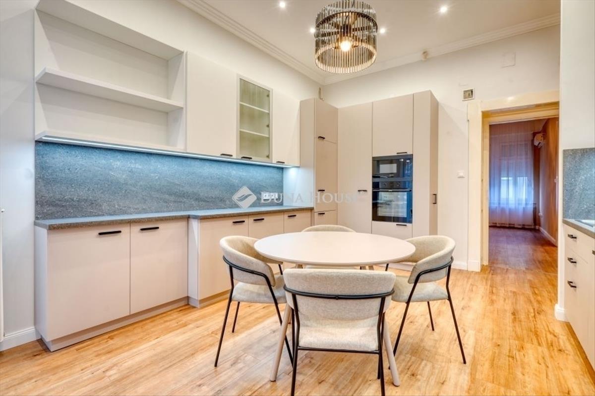 Please scroll down for English! FRISSEN felújított, igényes lakás a visegrádi utcában! Westend és a szent istván park között! Xiii. kerület, Újlipótvárosban, a Westend és a Lehel téri piac szomszédságában, de néhány perc sétára a Szent István parktól és a Dunától, egy nagyon szépen karbantartott hívóliftes társasházban eladó egy 4. emeleti, napfényben úszó 103 m2-es lakás. Elrendezése:- nappali, - két hálószoba, - nagy étkezős, gépesített konyha, - fürdőszoba WC-vel, - külön wc, - háztartási helyiség, - utca és belső kert felőli erkélyek. a lakás teljes felújításon esett át, amelyben vadonatúj gépesített konyha, beépített szekrények, elegáns világítás és függönyök, hűtő-fűtő klíma áll rendelkezésre. a kétrétegű műanyag nyílászárók redőnnyel felszereltek. a környéken a Westend Bevásárlóközpont, Lehel téri piac, minden szolgáltatás, boltok, éttermek, hangulatos kávézók, Szent István park és a Duna part, óvodák és iskolák gyalogosan megtalálhatók. FRESHLY renovated, precious apartment in visegrádi street, between westend and szent istván SQUARE! In 13th district, Újlipótváros, next to Westend and Lehel market, a few minutes walk from Szent István square and the Danube, a 4th floor, sunny 103 sqm apartment is for sale in a well-maintained apartment building with a lift. Layout:- living room, - two bedrooms, - large dining room, equipped kitchen, - bathroom with toilet, - separate toilet, - utility room, - balconies facing the street and the inner garden too. The apartment has undergone a complete renovation, in which a brand new equipped kitchen, built-in wardrobes, elegant lighting and curtains, air conditioning and heating are available. The double-layer plastic windows are equipped with shutters. In the nearby: Westend Shopping Center, Lehel Market, all services, shops, restaurants, cozy cafes, Szent István Square and the Danube, kindergartens and schools can be found within walking distance.