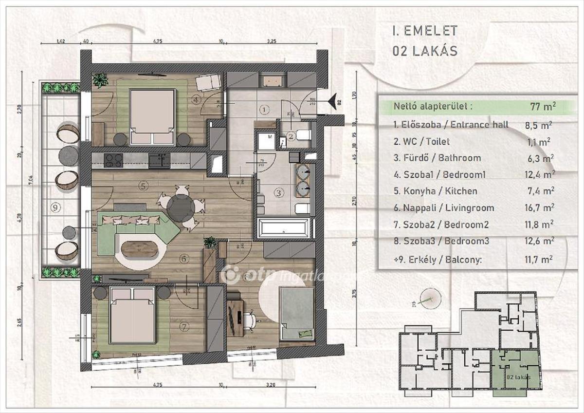 - Alapterület:77 m2