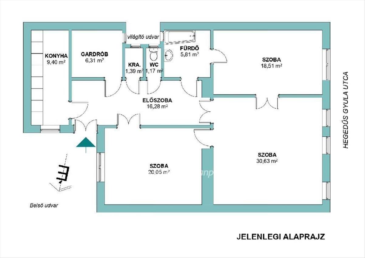 A lakás: a lakásban három nagy méretű, nagy belmagasságú, szoba található, melyek közül 2 utcai, 1 pedig belső udvari fekvésű. Tágas előszoba, fürdőszoba, külön wc, gardrób szoba, kamra, és konyha található, klasszikus, a polgári lakásokra jellemző elrendezésben. Az impozáns terek, az eredeti, de felújított külső és belső nyílászárók ezt a hangulatot tükrözik.