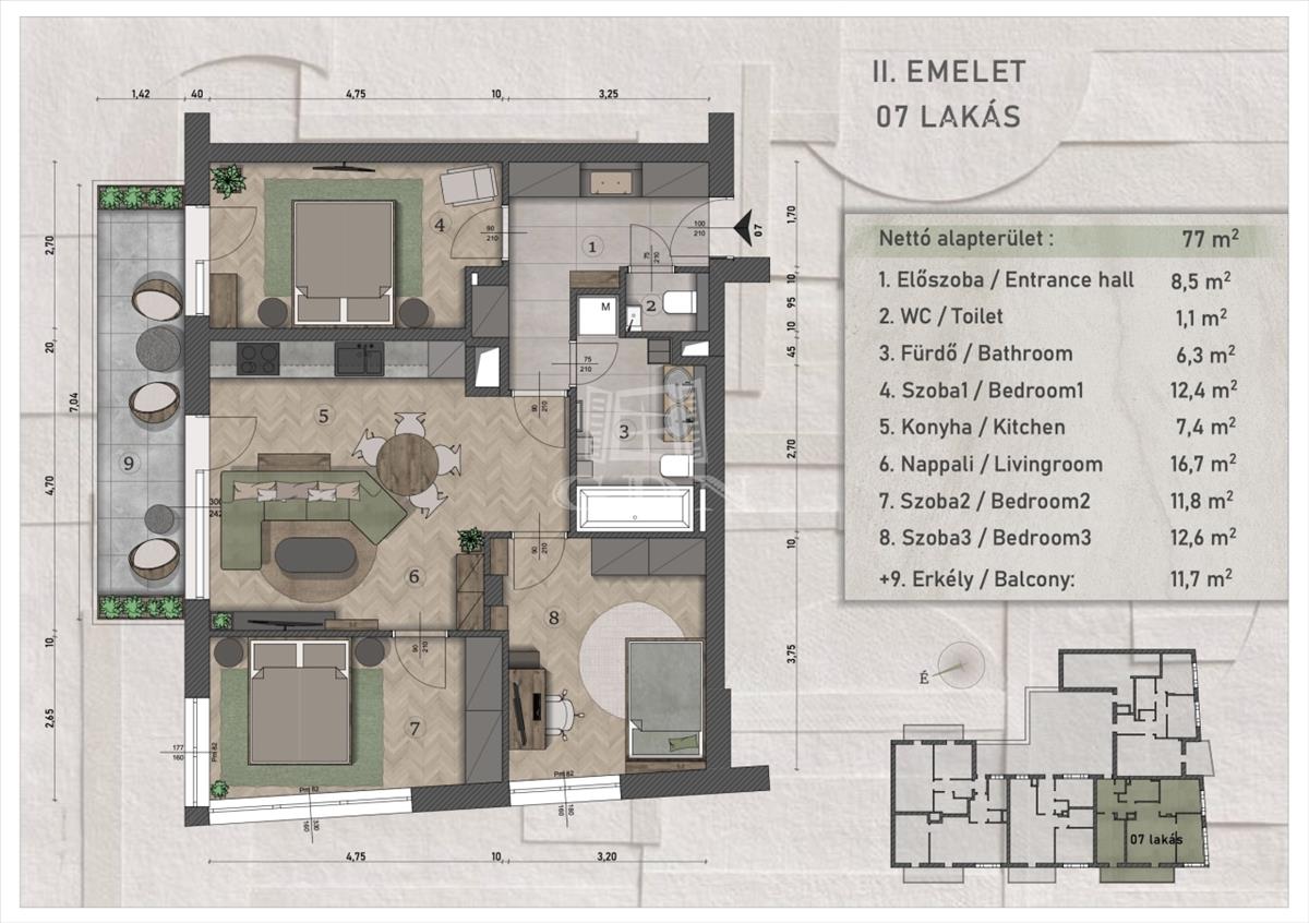 - Alapterület:77 m2