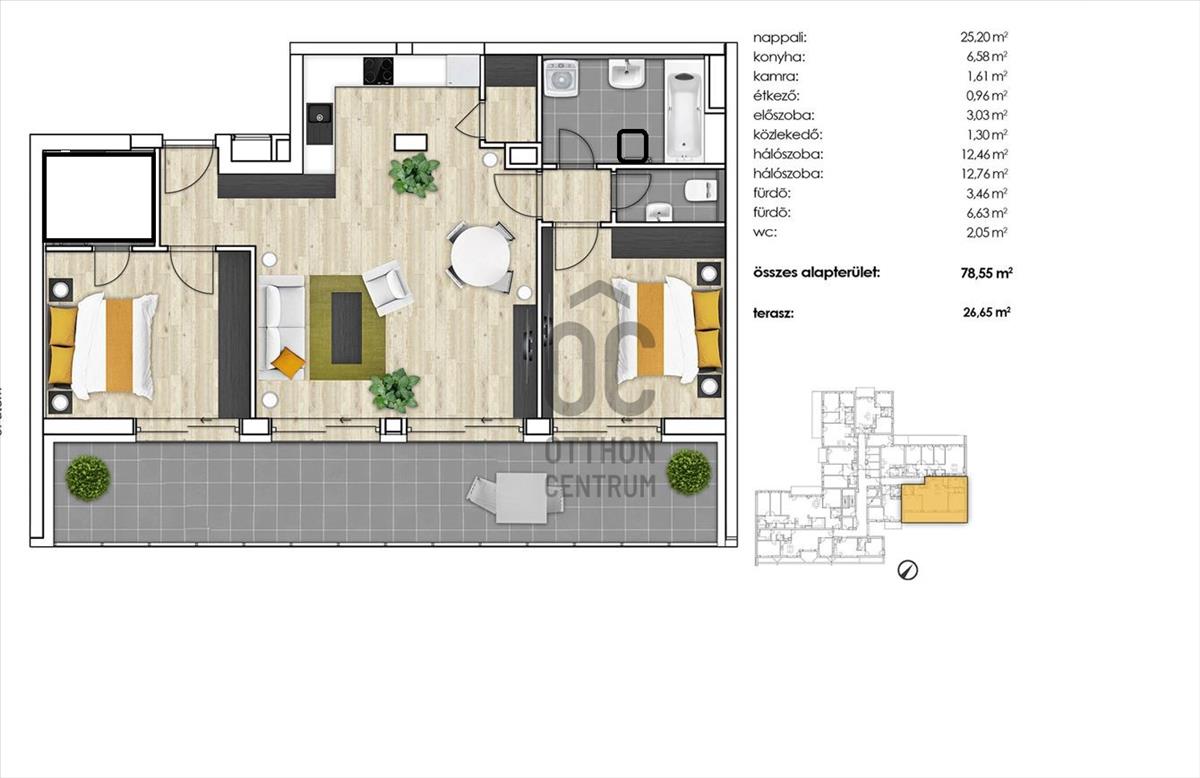 A lakás szívét a világos nappali és az amerikai konyha képezi, ahol a közös étkezések és baráti összejövetelek felejthetetlen pillanatai születhetnek. a tágas terasz, melynek mérete 26, 65 négyzetméter, csodálatos panorámát nyújt a környező városrészre, így a pihenés és a szórakozás egyaránt megvalósítható a szabadban. a lakás modern fűtési és hűtési rendszere hőszivattyús technológiával működik, amely nemcsak energiatakarékos, hanem kényelmes klímát biztosít az év minden hónapjában. a motoros redőnyök pedig nemcsak a biztonságot növelik, hanem a kényelmet is, hiszen egy gombnyomással szabályozhatja a fényt és a hőmérsékletet. a környék ellátottsága kiváló, hiszen a közelben található boltok, éttermek és kávézók széles választéka várja Önt.