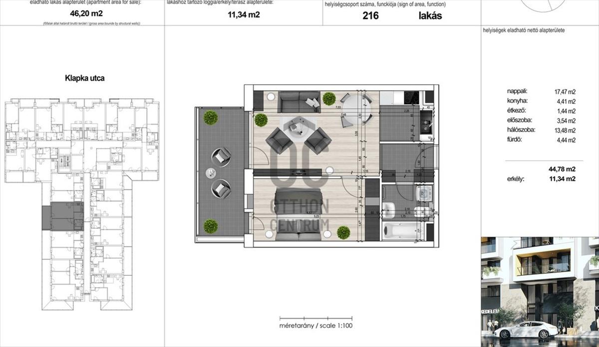 A 45 m²-es, nappali + 1 hálós elrendezésű ingatlan a 2. emeleten helyezkedik el, praktikus kialakításának köszönhetően ideális választás akár saját célra, akár befektetésnek.