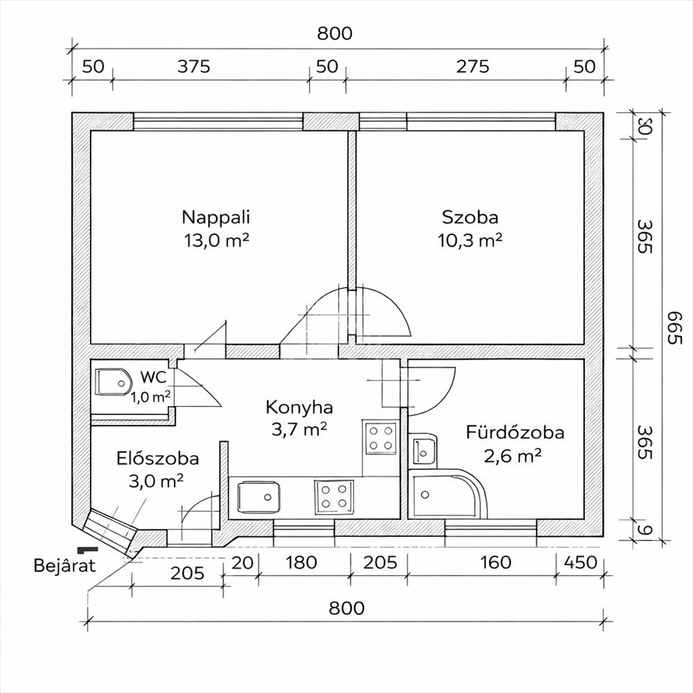 - Alapterület:33 m2