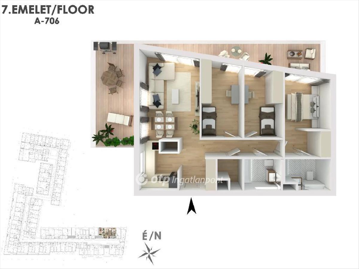 Budapest rendkívül felkapott és folyamatosan fejlődő környéken a XIII kerületben, közel a Dunához, kiemelkedő színvonalú modern, elegáns és energia hatékony új lakópark kerül megépítésre. a 8. emeletes épület komplexum 3 parkoló szinttel, tárolókkal és kerékpároknak kijelölt helyekkel fog rendelkezni. a 377 lakásos társasházban ideális lakásmixet kínálunk mindenki számára. a lakások méretei 30m2-135m2-ig terjednek. a legtöbb lakáshoz nagy méretű erkély és terasz tartozik. a földszinti parkoló fölött tetőkert létesül, melynek egy része közösségi kert, továbbá számos kényelmi szolgáltatás is elérhető lesz: zöld udvar, játszótér, fitnesz terem, szauna áll majd rendelkezésre, ráadásul mindez a Duna-part közelében. a fűtésről és hűtésről gondoskodó levegő/víz hőszivattyús rendszer aa+ besorolással rendelkezik. a lakásokban mennyezetfűtés-hűtés készül, illetve a fürdőszobákban opcionális padlófűtés létesíthető. a nyári melegre gondolva a hűtést olyan technikával oldják meg, hogy a levegőt ne szárítsa. a lakóépület anyagösszetétele is kiemelkedő színvonalat tükröz. Az építés során kizárólag minőségi anyagokat használnak fel, hogy tartós és időtálló otthonokat teremtsenek. a 8 emeletes épület kiválóan illeszkedik a városképbe, valamint ideális közlekedési infrastruktúrával rendelkezik. Az elhelyezkedése kiváló, hiszen a Váci úti irodafolyosó szomszédságában található, így könnyedén elérhető a város központja és a fontosabb üzleti negyedek.Az OTP Ingatlanpont, mint egyetlen közvetlen banki hátterű ingatlanközvetítő társaság teljes körű ügyintézéssel áll az eladók és a vevők rendelkezésére! a kínálatunkból választott ingatlan finanszírozásához minősített fogyasztóbarát, piaci és kedvezményes hitel- és lízingkonstrukciókat kínálunk (lakásvásárlási hitel, CSOK plusz, szabad felhasználású hitel, babaváró hitel, céges hitelek, pályázatok). Az adásvételi szerződés megkötéséhez igény szerint megbízható ügyvédi közreműködést biztosítunk, és segítséget nyújtunk az adásvételhez kapcsolódó egyéb ügyek intézéséhez.
