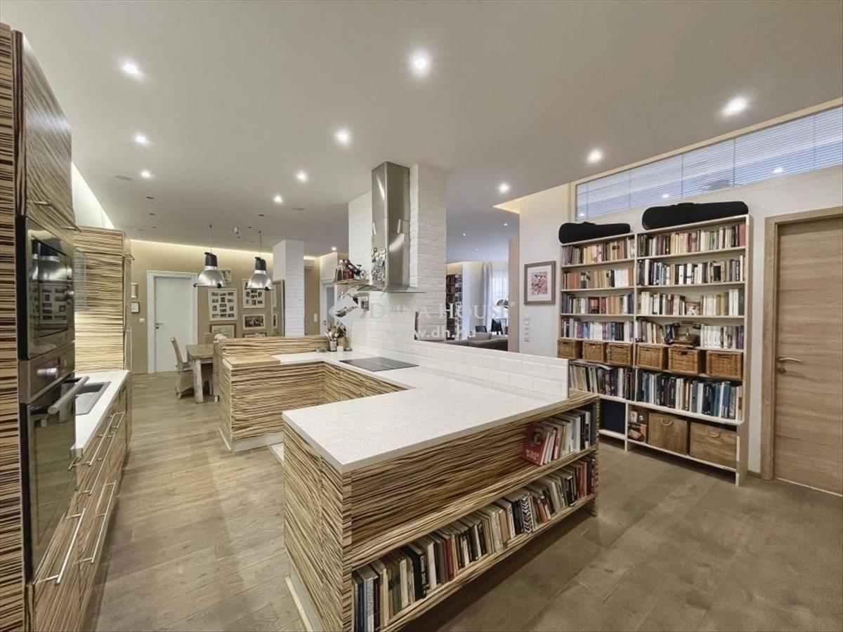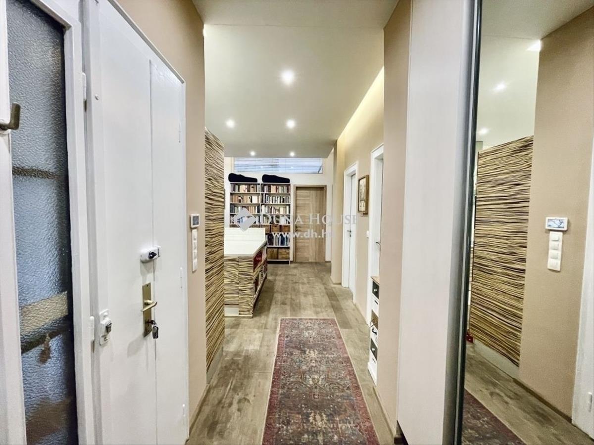 10 Éve teljeskörű felújításon esett át, modernizálták a nyilászárókat, minden szobát klimatizáltak és távfelügyeleti riasztóval láttak el. Az újragondolt alaprajzon összesen 5db beépített szerkrényekkel is felszerelt hálószobával, 2 fürdőszobával, vendég wc-vel, valamint egy hatalmas amerikai konyhás nappali, étkező került kialakításra. a tájolásnak köszönhetően egész nap világos. Két hálószoba a csendes, a parkosított belső udvarra néz, míg a többi szoba utcai kilátást biztosít. 2Db gardrób 1db kamra helyiség került még kialakításra, a három erkély összesen 12 négyzetméter, valamint hozzátartozik 4 m2-es alagsori, zárható tároló is.