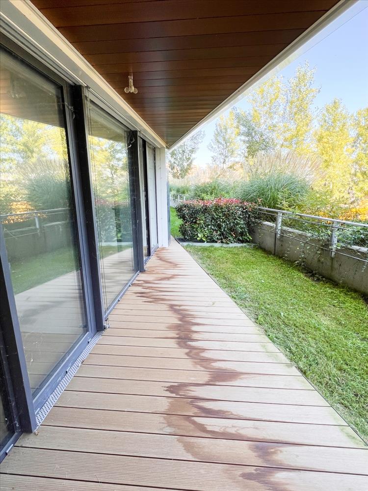 A lakás az épület keleti oldalán és egyben a legcsendesebb részén helyezkedik el, a kertkapcsolat révén bruttó 74 m2 területű életteret biztosít: