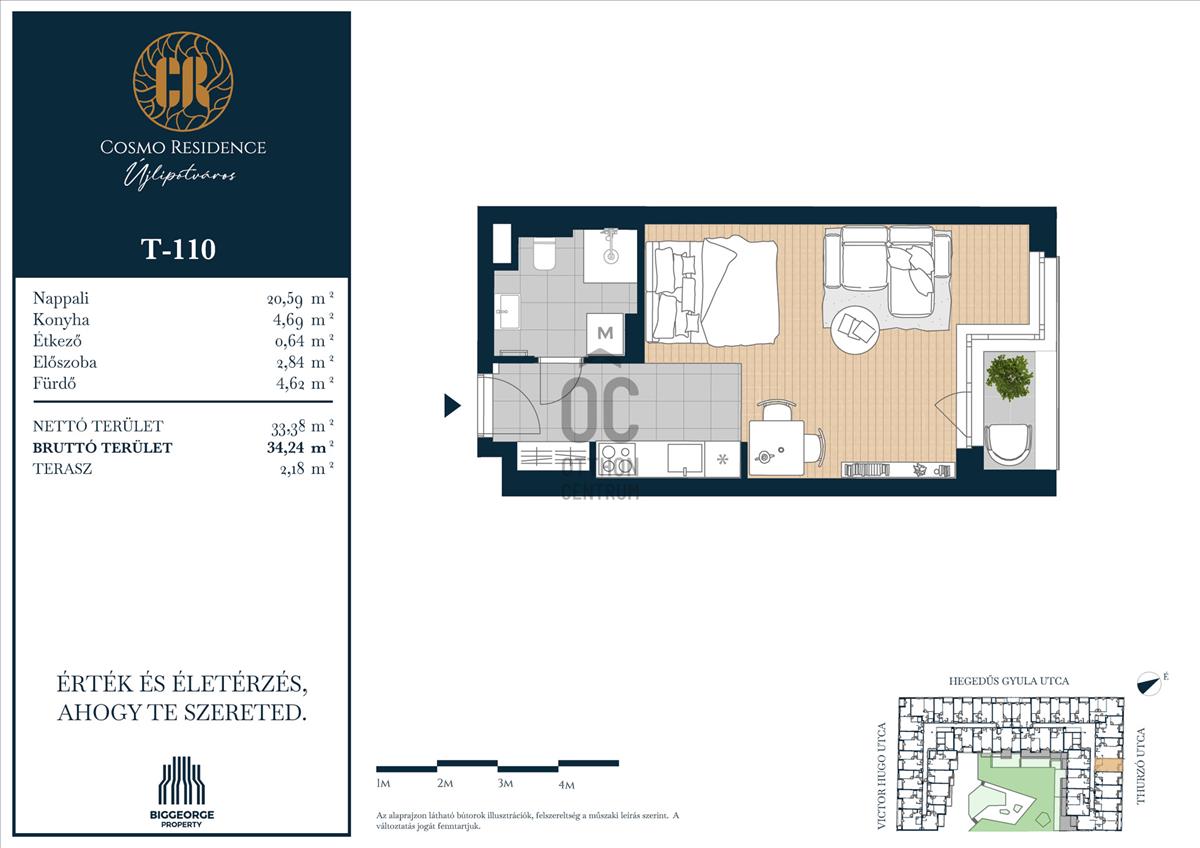 A Cosmo Residence nemcsak egy újabb lakópark – hanem egy életstílus, amely a belvárosi pezsgést és a nyugodt, zöld környezetet egyaránt biztosítja lakóinak. Az ingatlan 2027. Első felére készül el, és összesen 230 változatos méretű és elrendezésű lakást kínál, a 32 m2-es stúdiólakásoktól kezdve egészen a tágas, 125 m2-es, nappali + három hálószobás lakásokig. a legtöbb lakás erkéllyel rendelkezik, a legfelső szinten pedig exkluzív penthouse lakások várják azokat, akik a privát tetőterasz nyújtotta különleges panorámát szeretnék élvezni.