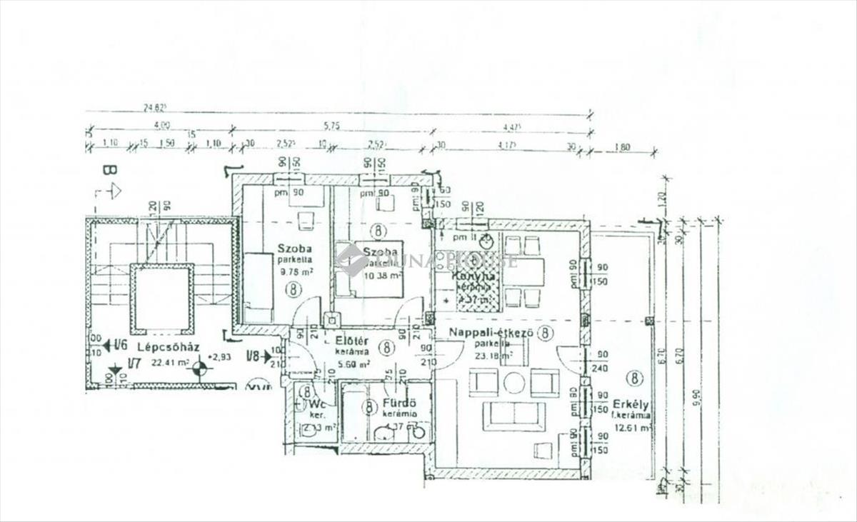A lakáshoz tartozik és kötelezően megvásárolandó egy teremgarázs beálló + 7 mFt és egy 5, 16 nm-es tároló 5 mFt, összesen 105 mFT.