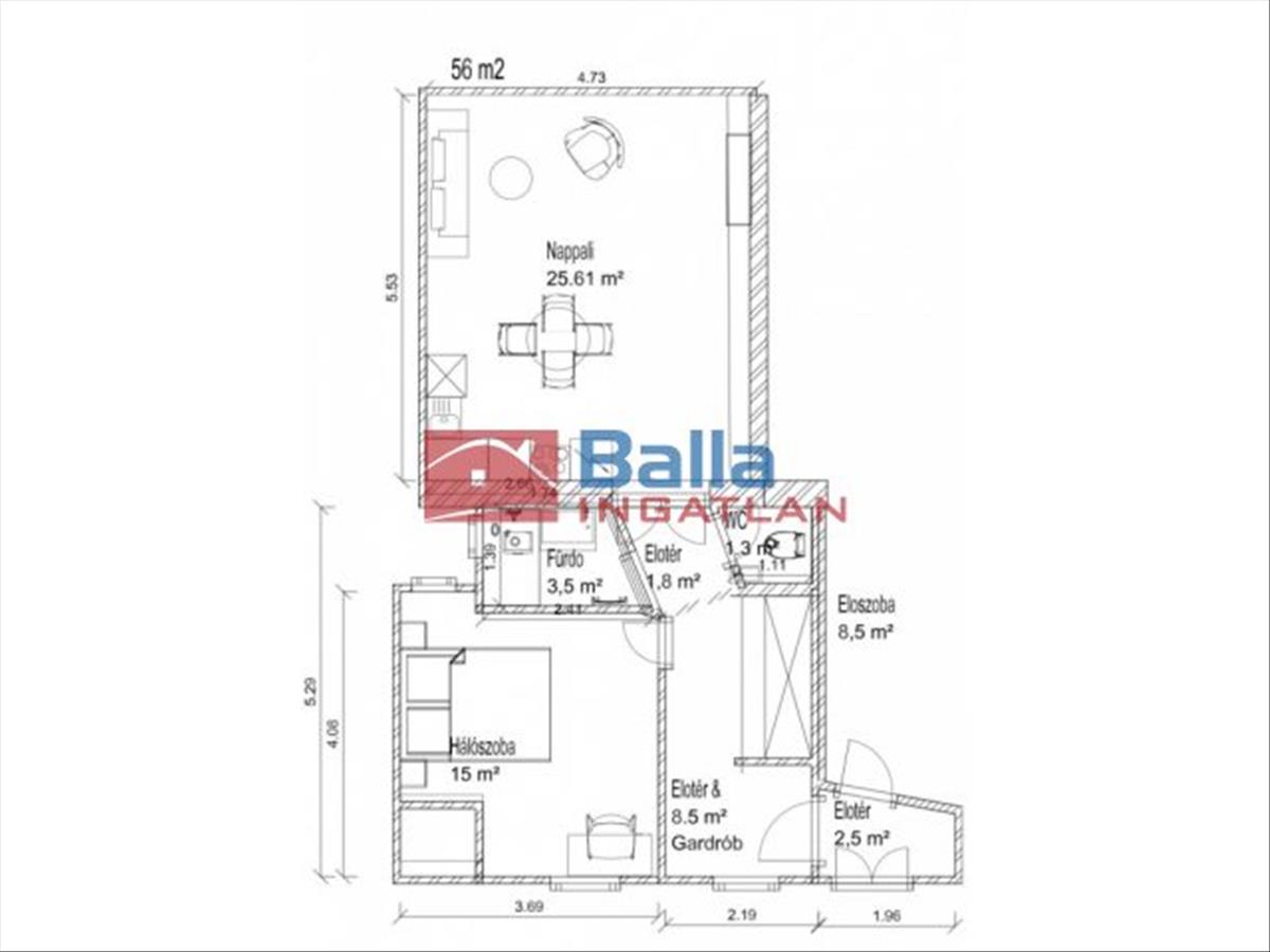- Alapterület:56 m2