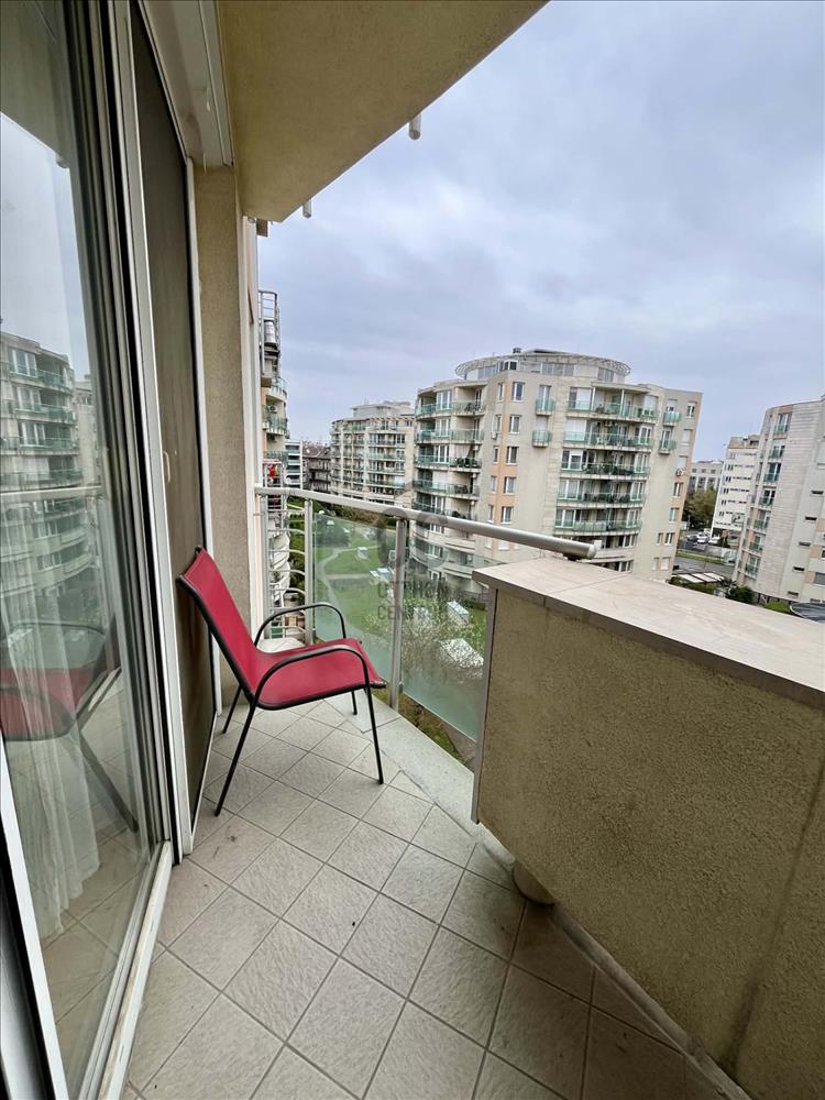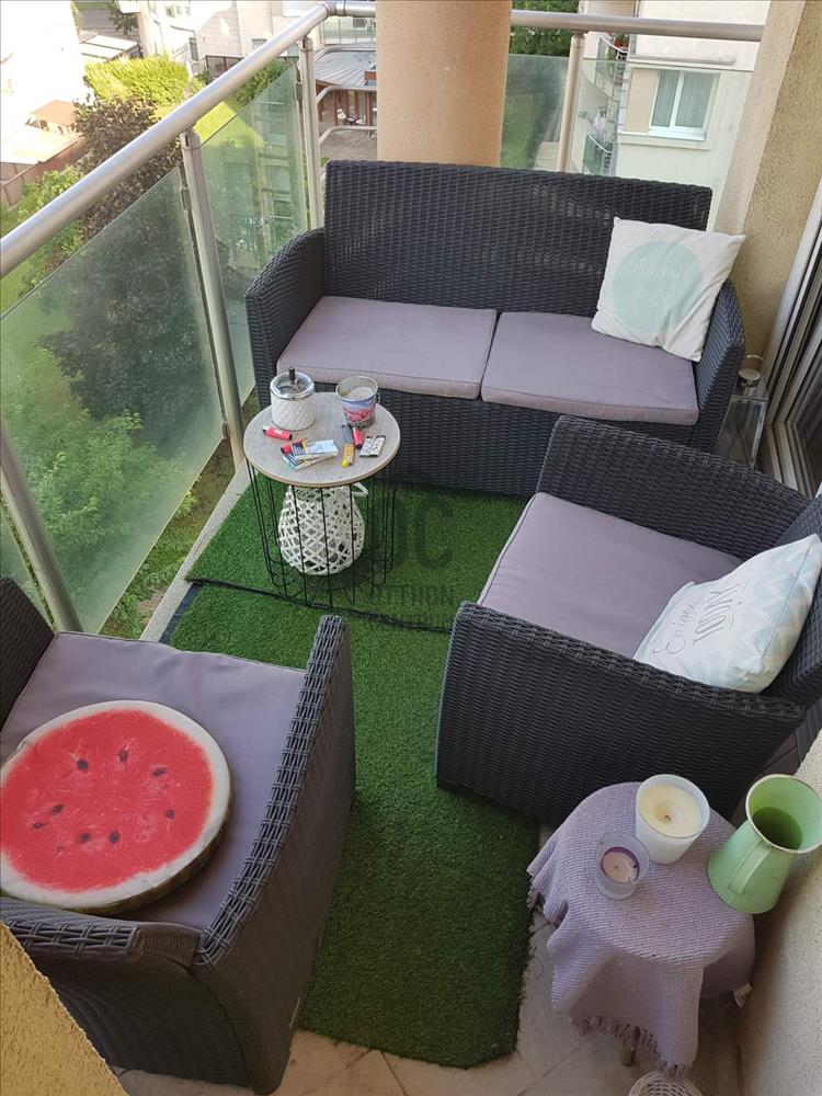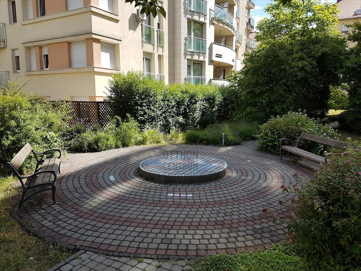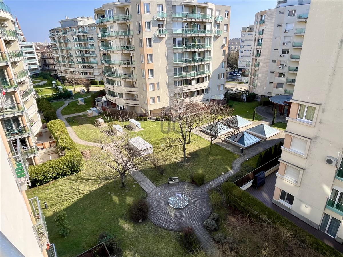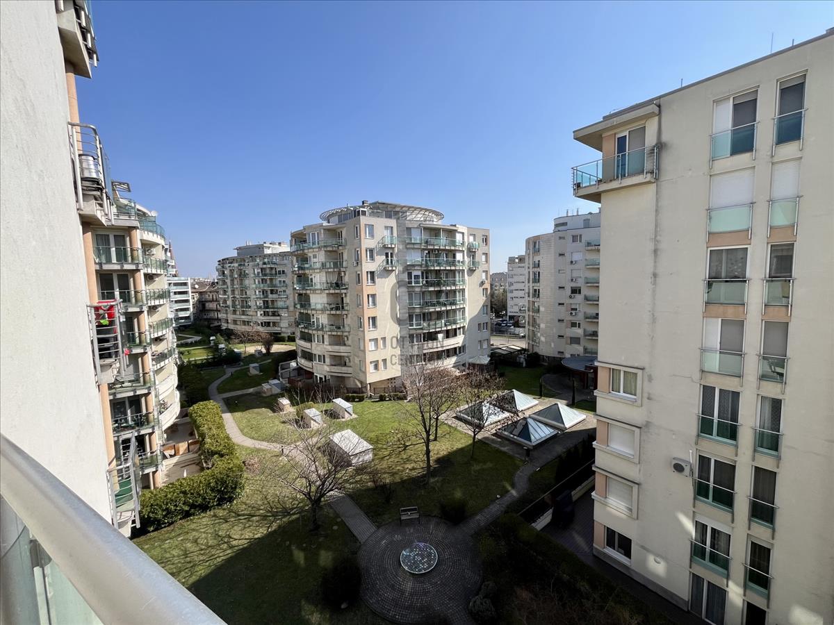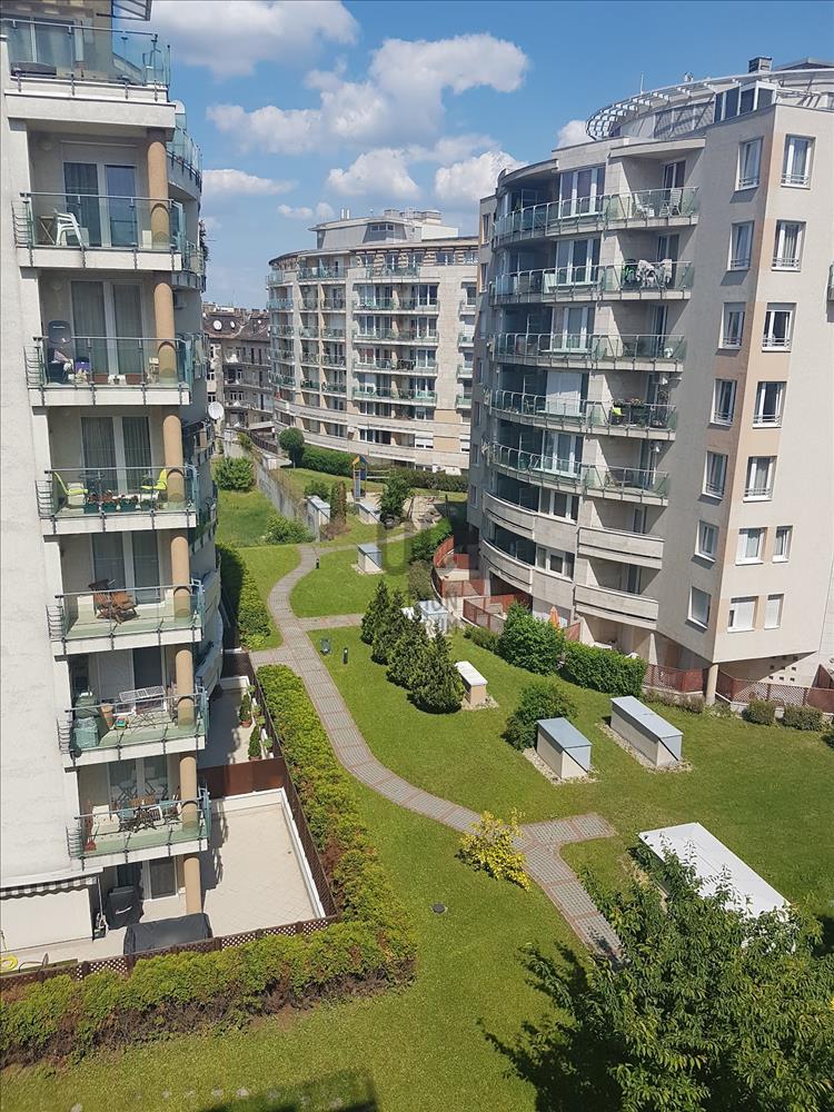 -Két erkély kilátással a társasházak közötti gondozott zárt kertre