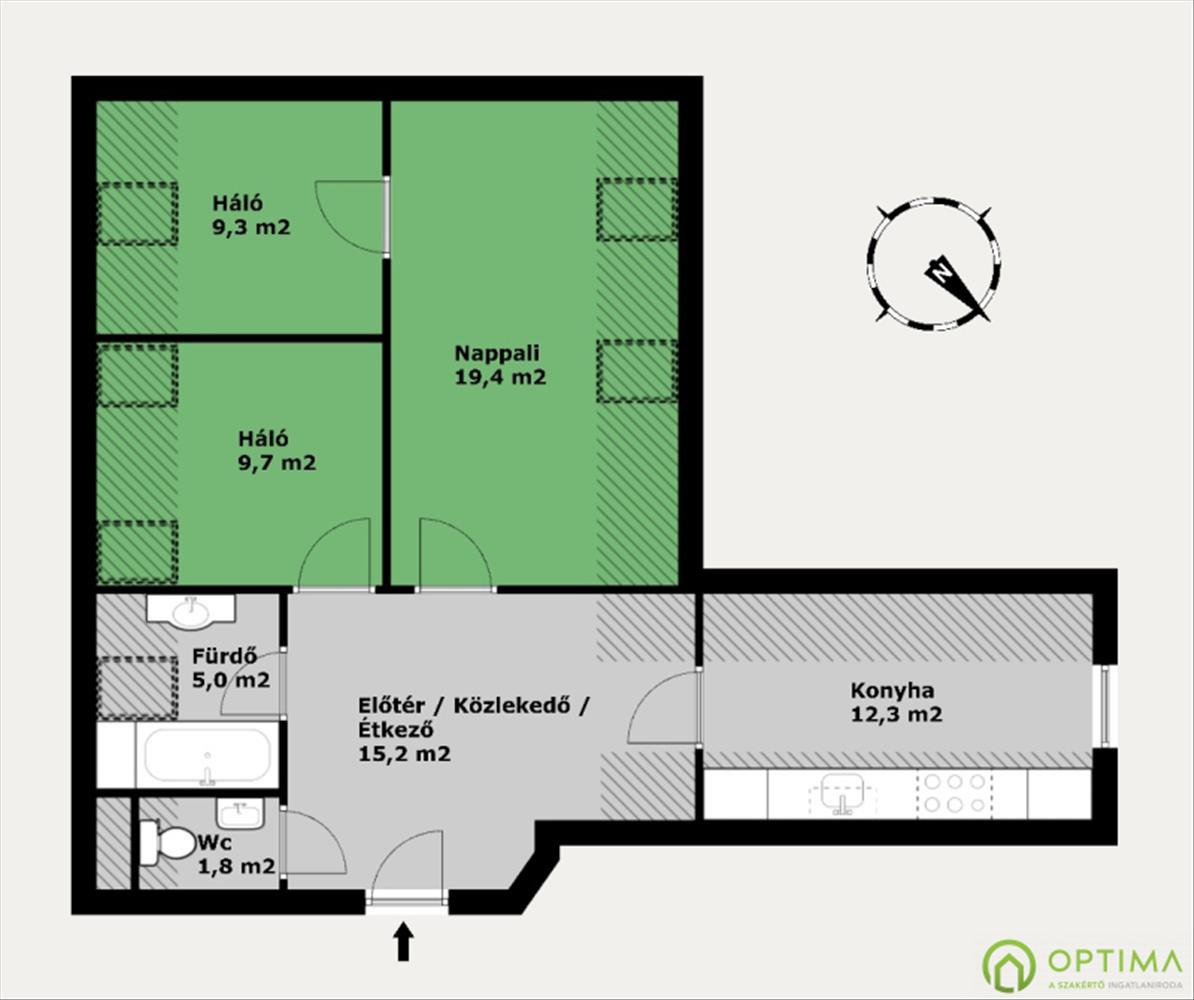 The useful floor area of ​​the apartment is approx. 10 m2 larger. Every wall of the apartment is a septum, so this is an extraordinary advantage in case of a possible conversion, the new owner can transform it completely according to his individual needs.
