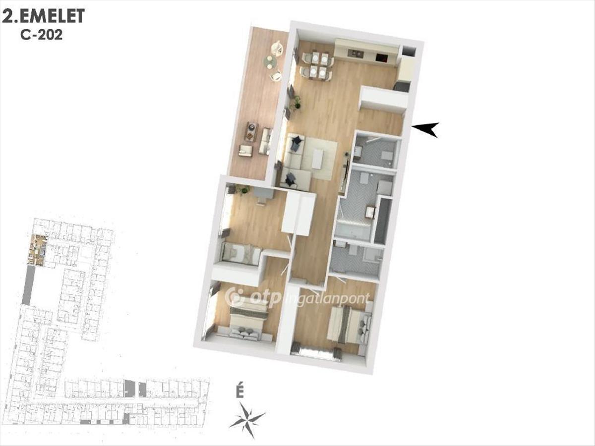 Budapest rendkívül felkapott és folyamatosan fejlődő környéken a XIII kerületben, közel a Dunához, kiemelkedő színvonalú modern, elegáns és energia hatékony új lakópark kerül megépítésre. a 8. emeletes épület komplexum 3 parkoló szinttel, tárolókkal és kerékpároknak kijelölt helyekkel fog rendelkezni. a 377 lakásos társasházban ideális lakásmixet kínálunk mindenki számára. a lakások méretei 30m2-135m2-ig terjednek. a legtöbb lakáshoz nagy méretű erkély és terasz tartozik. a földszinti parkoló fölött tetőkert létesül, melynek egy része közösségi kert, továbbá számos kényelmi szolgáltatás is elérhető lesz: zöld udvar, játszótér, fitnesz terem, szauna áll majd rendelkezésre, ráadásul mindez a Duna-part közelében. a fűtésről és hűtésről gondoskodó levegő/víz hőszivattyús rendszer aa+ besorolással rendelkezik. a lakásokban mennyezetfűtés-hűtés készül, illetve a fürdőszobákban opcionális padlófűtés létesíthető. a nyári melegre gondolva a hűtést olyan technikával oldják meg, hogy a levegőt ne szárítsa. a lakóépület anyagösszetétele is kiemelkedő színvonalat tükröz. Az építés során kizárólag minőségi anyagokat használnak fel, hogy tartós és időtálló otthonokat teremtsenek. a 8 emeletes épület kiválóan illeszkedik a városképbe, valamint ideális közlekedési infrastruktúrával rendelkezik. Az elhelyezkedése kiváló, hiszen a Váci úti irodafolyosó szomszédságában található, így könnyedén elérhető a város központja és a fontosabb üzleti negyedek.Az OTP Ingatlanpont, mint egyetlen közvetlen banki hátterű ingatlanközvetítő társaság teljes körű ügyintézéssel áll az eladók és a vevők rendelkezésére! a kínálatunkból választott ingatlan finanszírozásához minősített fogyasztóbarát, piaci és kedvezményes hitel- és lízingkonstrukciókat kínálunk (lakásvásárlási hitel, CSOK plusz, szabad felhasználású hitel, babaváró hitel, céges hitelek, pályázatok). Az adásvételi szerződés megkötéséhez igény szerint megbízható ügyvédi közreműködést biztosítunk, és segítséget nyújtunk az adásvételhez kapcsolódó egyéb ügyek intézéséhez.