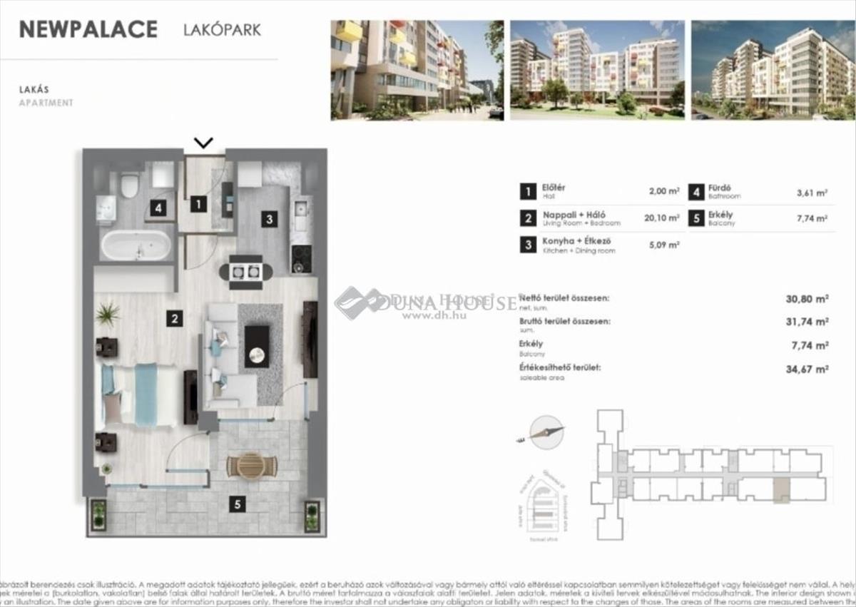 Design és energiahatékonyság egyben Angyalföldön! Ritka lehetőségként kínálunk eladásra a főváros egyik legnépszerűbb, gyorsan fejlődő, csendes részén, a Xlll. kerületi, közkedvelt New Palace lakóparkban, egy, új építésű, 35 nm alapterületű, rendkívül átgondolt, jó elrendezésű, világos, terasszal rendelkező, 4. emeleti, nappali + 1 szobás, gyönyörű studio lakást. a lakás 2026 márciusra lesz beköltözhető. Teljeskörűen, a tervek szerint, magas minőségben megvalósítva. Az előszobából egy rövid közlekedőn érhető el az a kicsi de élhető méretű, keleti irányba néző, hatalmas teraszajtónak köszönhetően, a nap legnagyobb részében szép, világos nappali, ahol helyet kapott egy kompakt konyha is. Innen nyílik a szintén északi fekvésű hálószoba is csendet és intimitást biztosítva az alváshoz. Szintén az előszobából megközelíthető egy minden komfortot kielégítő fürdőszoba is, ami Wc-vel és egy épített zuhannyal került kialakításra. a federt terasz, ami a nappaliból és a hálószobából is megközelíthető, alkalmas, grillezésre, vendégfogadásra, keleti tájolásnak köszönhetően, kellemes, árnyékos, így a nyári kánikulában is rendkívül élhető. Valamennyi burkolat, prémium kategóriás. Az épületben biztonsági kamerarendszer működik. a lakás pedig távfelügyeletre alkalmas riasztórendszerrel felszerelt. a nappali és a szoba is, külön szabályozható klímarendszerrel rendelkezik. Belmagasság: 2, 7 m. Az ingatlan rendkívül alacsony fenntartási költségű. Mennyezeti hűtőfűtő rendszer gondoskodik a fűtésről és a melegvízellátásról, melynek összege rendkívül alacsony havonta, a közös költség pedig magában foglalja az összes házzal kapcsolatos egyéb költséget. a társasház rendelkezik megtakarítással, illetve, biztosítással is, a közös képviselet gondosan kezeli a ház ügyeit. a Lakópark elhelyezkedése kiváló, autóval a Váci útnak köszönhetően, bárhová gyorsan el lehet jutni, de tömegközlekedéssel is jól megközelíthető, sétatávolságra 3-as Metro Gyöngyösi utcai megállója, buszmegállók, illetve az Újpest vasútállomás. Valamint, néhány perces sétatávolságra található Duna Plaza bevásárlóközpontnak, Aldinak, Sparnak, Lidl-nek, valamint a Népsziget és a gyöngyösi sétány és újpest központjának közelsége miatt biztosított számos bevásárlási, kikapcsolódási és sportolási lehetőség. a körzetes óvoda és általános iskola szintén 10 perces sétával elérhető. Az ingatlan, új építésű, állapotát tekintve, teljesen, kifogástalan állapotú, nyár végén költözhető. Kialakítása és a lakópark által biztosított csendes, kellemes környezete miatt kitűnő választás otthonnak de akár, értékálló befektetésnek is. Az utcában, ingyenes a parkolás. Illetve a lakáshoz megvásárolható, teremgarázs beálló épületen belül a pinceszinten. Ára: 6 000 000 Ft! További információért, illetve megtekintési időpontért, hívjon bizalommal! Hitel.hu - Hasonlítsa össze a bankok lakáshitel ajánlatait