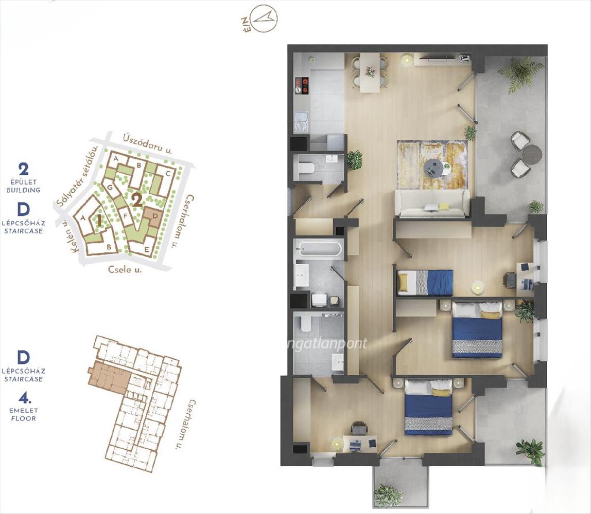 A 94 nm -es, négyszobás lakás elrendezése átgondolt és harmonikus: a tágas közösségi terek mellett jól elkülönülő privát szobák biztosítják a kényelmes mindennapokat. a lakás egyik kiemelt értéke a master bedroom, amely valódi privát lakosztályként működik: különálló, beépített gardróbszoba és saját fürdőszoba tartozik hozzá, így maximális kényelmet és intimitást biztosít a tulajdonos számára.