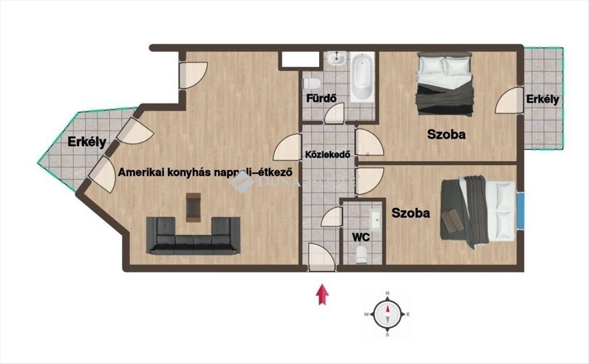 Rendkívül csendes, belső kertre néző, 2. emeleti, 2 erkélyes lakás a levendula LAKÓPARKBANBudapest egyik legkedveltebb, modern és nyugodt lakóparkjában, a XIV. kerületi Levendula Lakóparkban kínálunk eladásra egy kiváló állapotú, 2018 óta lakott, 70 m²-es +( fedett teraszok: 4, 77 m² + 3, 75 m²), tágas elrendezésű, 2 hálószobás + amerikai konyhás nappalis lakást. Lakás jellemzői:- Amerikai konyhás nappaliétkező, közvetlen kijárattal egy 3, 75 m²-es erkélyre, csendes, zöld belső kertre néző kilátássalKét külön nyíló hálószoba, egyikhez egy 4, 77 m²-es erkély is tartozikSzép állapotú, modern, teljesen gépesített konyha2 db hűtő-fűtő klímaberendezésEgyedileg, méretre gyártott beépített szekrények az előszobában és a fürdőkbenRedőnyök és szúnyoghálók minden ablakonA lakás belső kertre néző elhelyezkedésének köszönhetően kifejezetten csendes, miközben egész nap világos:- délelőtt a hálószobát és a dolgozó-/gyerekszobát süti a nap- délután a nappalikonyhaétkező kap természetes fénytEz a tájolás ideális a nyugodt hétköznapokhoz és az otthoni munkához is. a lakáshoz opcionálisan megvásárolható egy rendkívül tágas, 1. Szinten található teremgarázsbeálló, amely lifttel közvetlenül megközelíthető, és egész évben kényelmes, időjárástól független parkolást biztosít. Rendezett tulajdoni viszonyok, azonnal költözhető Nyugodt, zöldövezeti környezet kiváló ellátottsággal:- kávézó, pékség, patika, játszótér, óvoda, iskola a közelben- kiváló közlekedés: busz (5), villamos (62, 69) és troli (74, 81) pár perc sétával elérhetőA Duna House teljes kínálatával kapcsolatban forduljon hozzám bizalommal. Hitel ügyintézés a legjobb feltételekkel és a leggyorsabban díjmentesen. Eladás és vétel teljes körű ügyintézése, ingyenes tanácsadás, értékbecslés, megbízható ügyvédi háttér biztosítása.