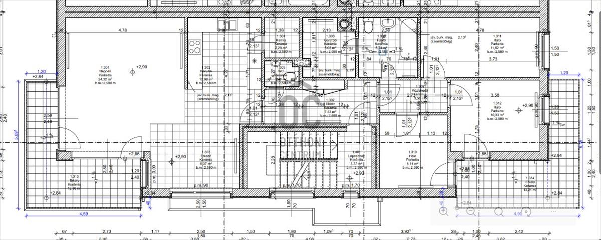 - a lakás alapterülete 100 m2 és tartozik hozzá 13, 22+12, 96m2 erkély
