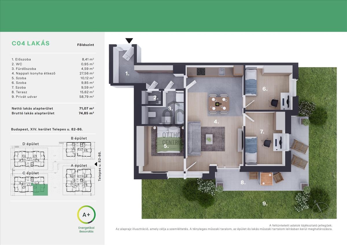 A jelen adatok tájékoztató jellegűek, ezért a Beruházó (sem a hirdető) azok változásával, vagy bármely attól való eltéréssel kapcsolatban semmilyen kötelezettséget, vagy felelősséget nem vállal.