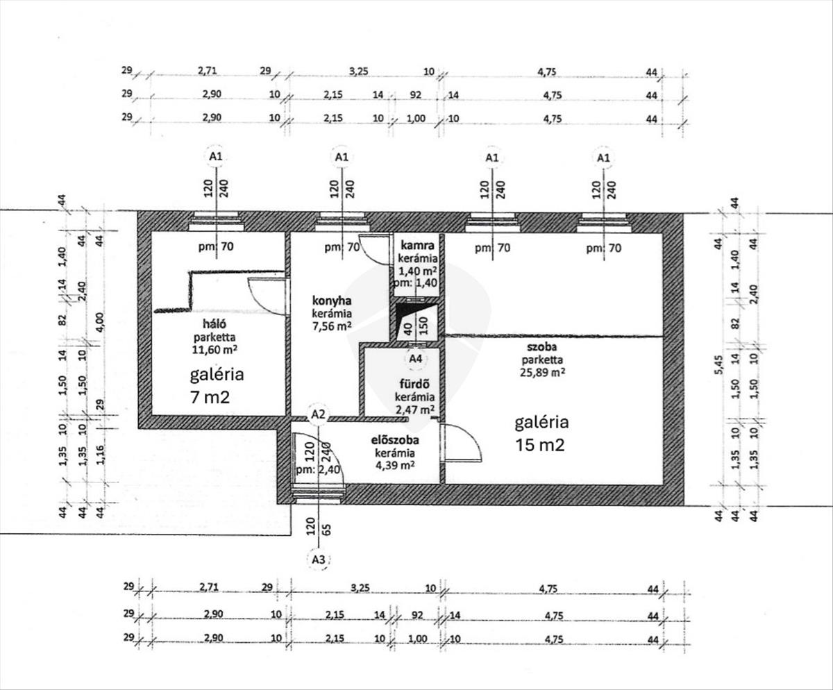 - szoba 25, 89 nm , melyhez 15 nm galéria tartozik