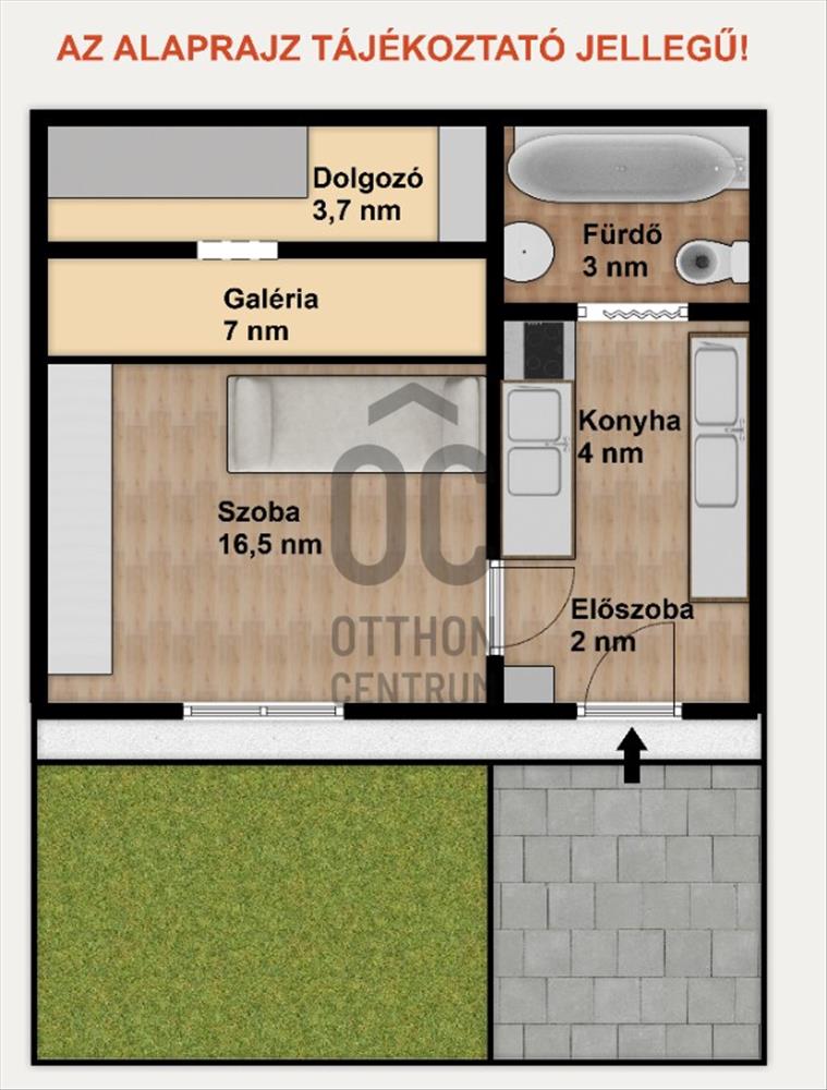 A bejáraton belépve egy barátságos konyhába érkezünk, ahonnan nyílik a fürdőszoba és a világos nappali/hálórész. a lakás különlegessége a tágas galéria, valamint az alsó szinten kialakított praktikus gardrób és dolgozósarok, amely ideális otthoni munkavégzéshez is.
