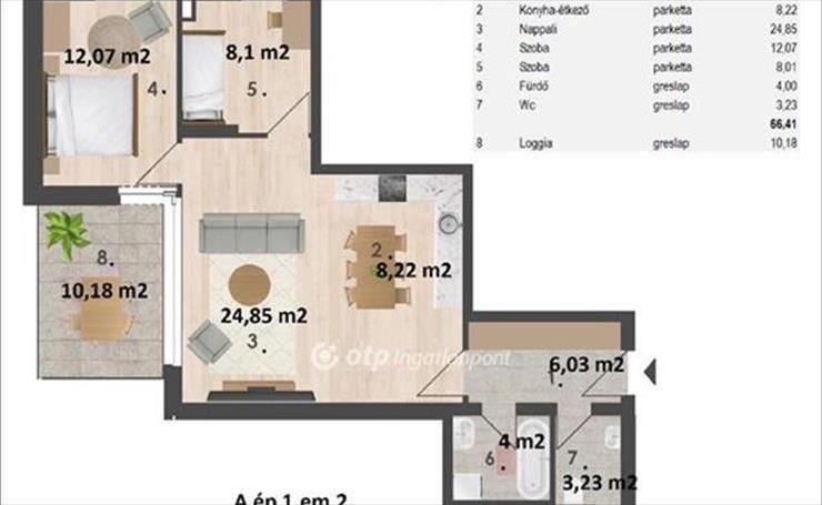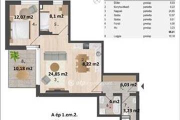 Eladó nappali plussz 2 hálószobás, első emeleti, 66, 41 nm-es lakás. Az otthon kényelméhez hozzájárul továbbá a 10, 18 nm-es loggia.