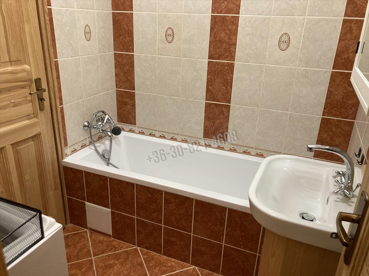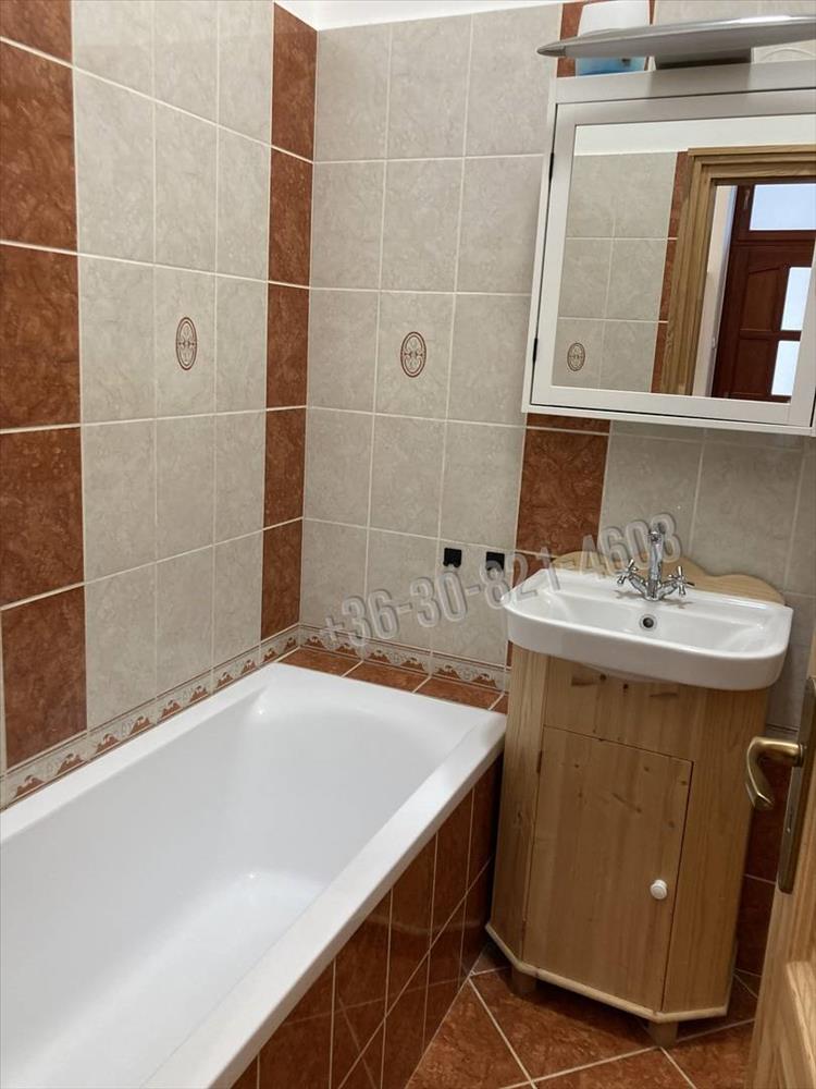 A praktikusan kialakított fürdő szellőző ablakkal és ízléses burkolatokkal rendelkezik, helyet kapott itt a mosógép és szeparálható a wc. a meleg vizet villany-bojler biztosítja.